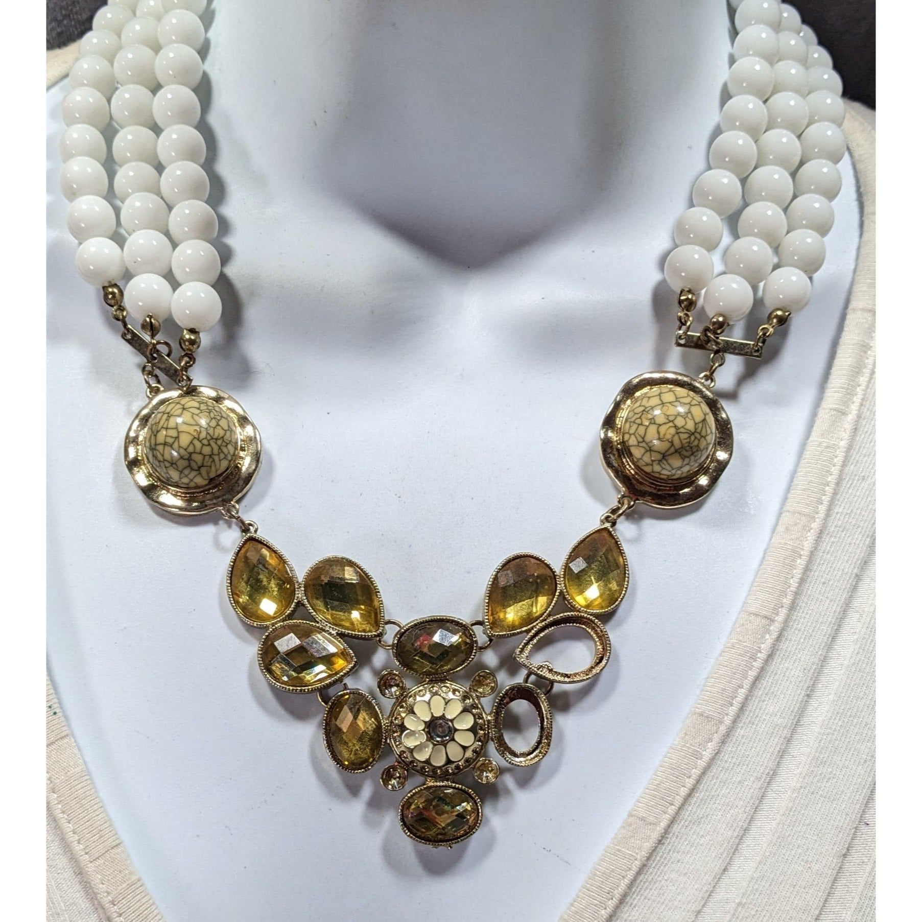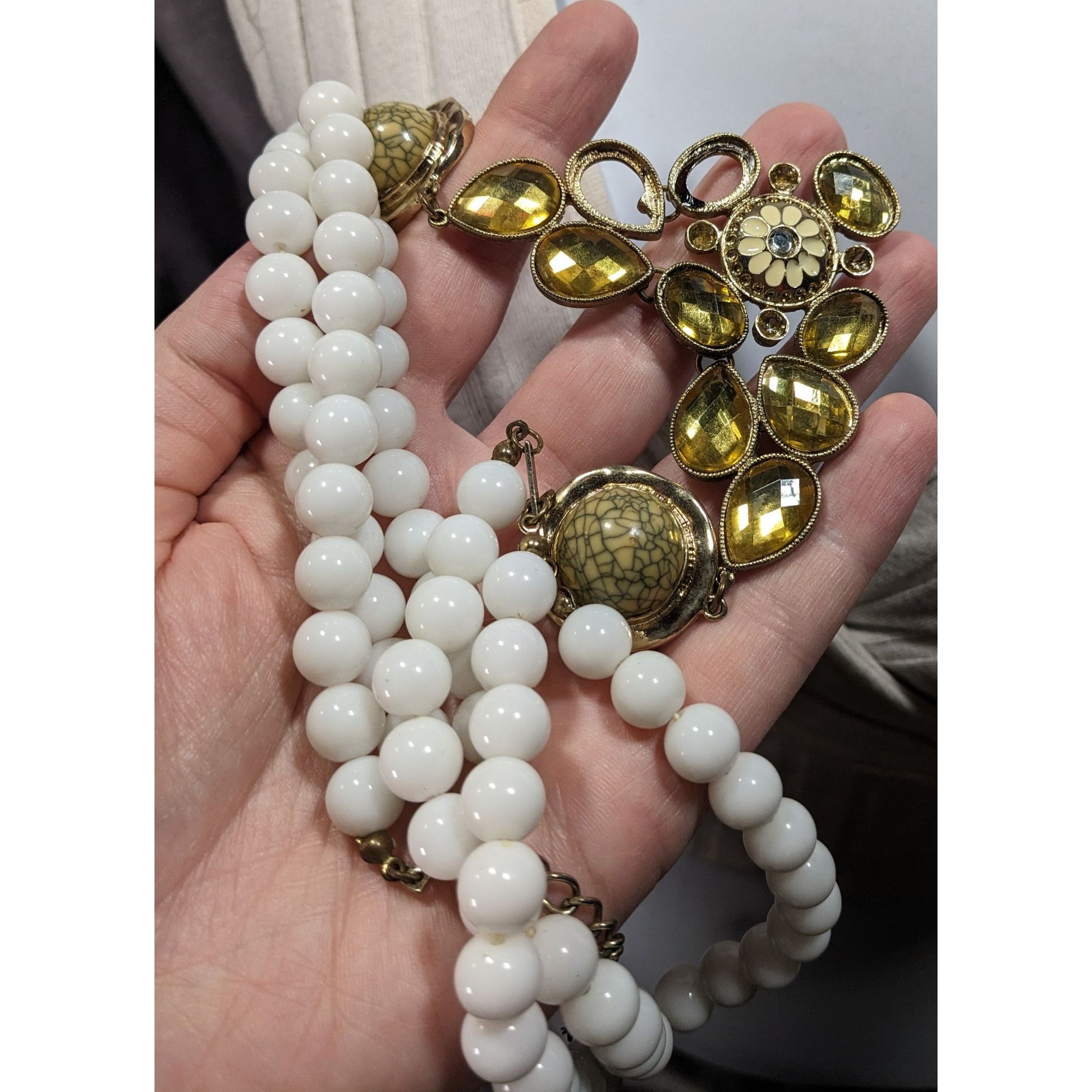 Vintage Floral Yellow And White Beaded Statement Necklace