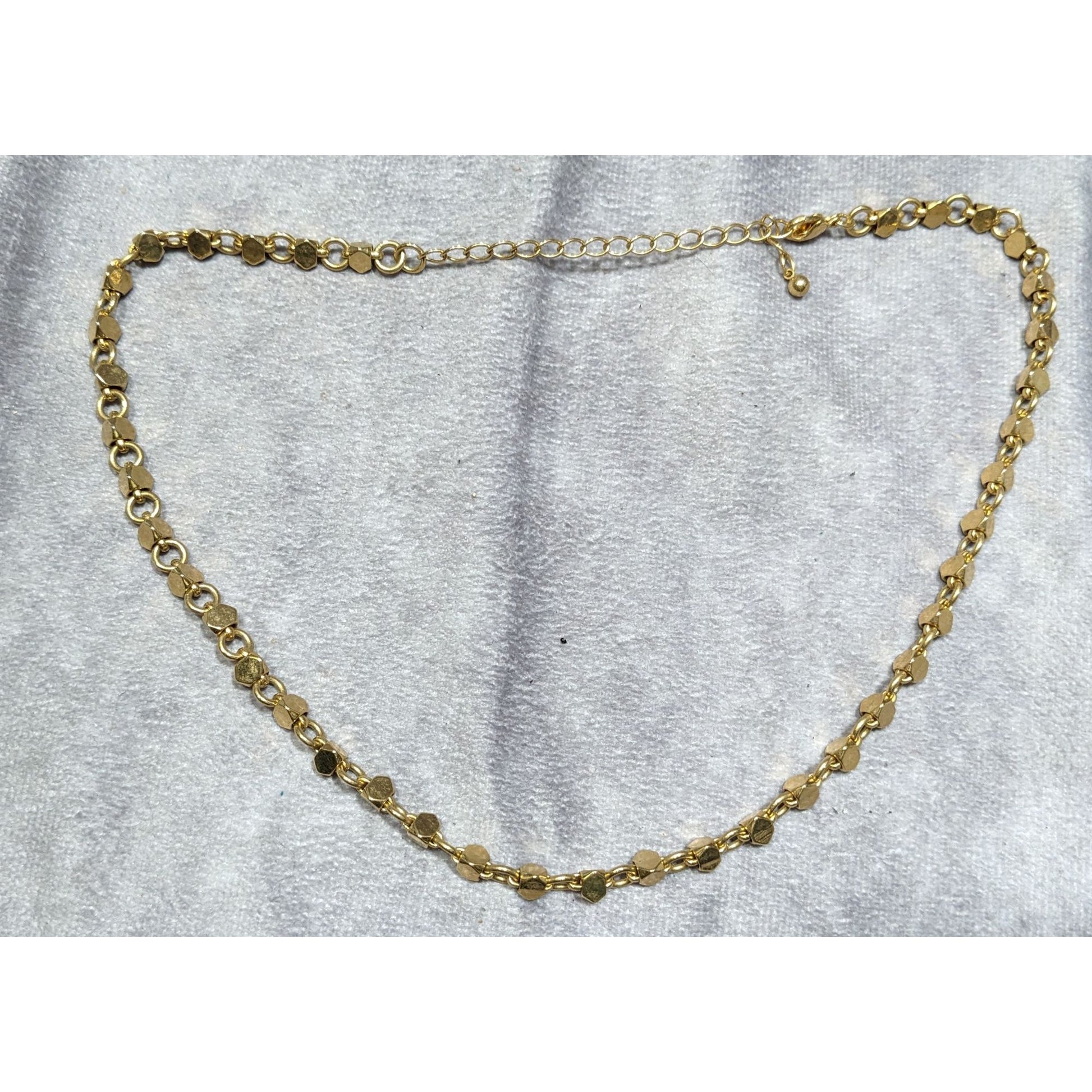 This necklace tells a tale of elegance with its gleaming gold tone and intricate hexagonal links. An adjustable clasp adds versatility to its timeless charm, fitting a variety of styles and occasions. A piece that whispers sophistication and individuality with every wear.