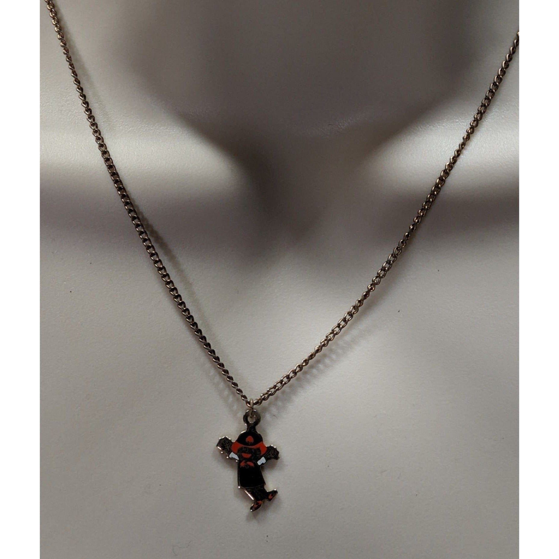 This charming necklace features a playful Brownie Scout pendant, a delightful nod to the past. Its intricate design and vintage appeal make it a unique keepsake for collectors and enthusiasts alike. The 16-inch chain complements the 3/4-inch pendant perfectly, creating a subtle yet eye-catching piece.