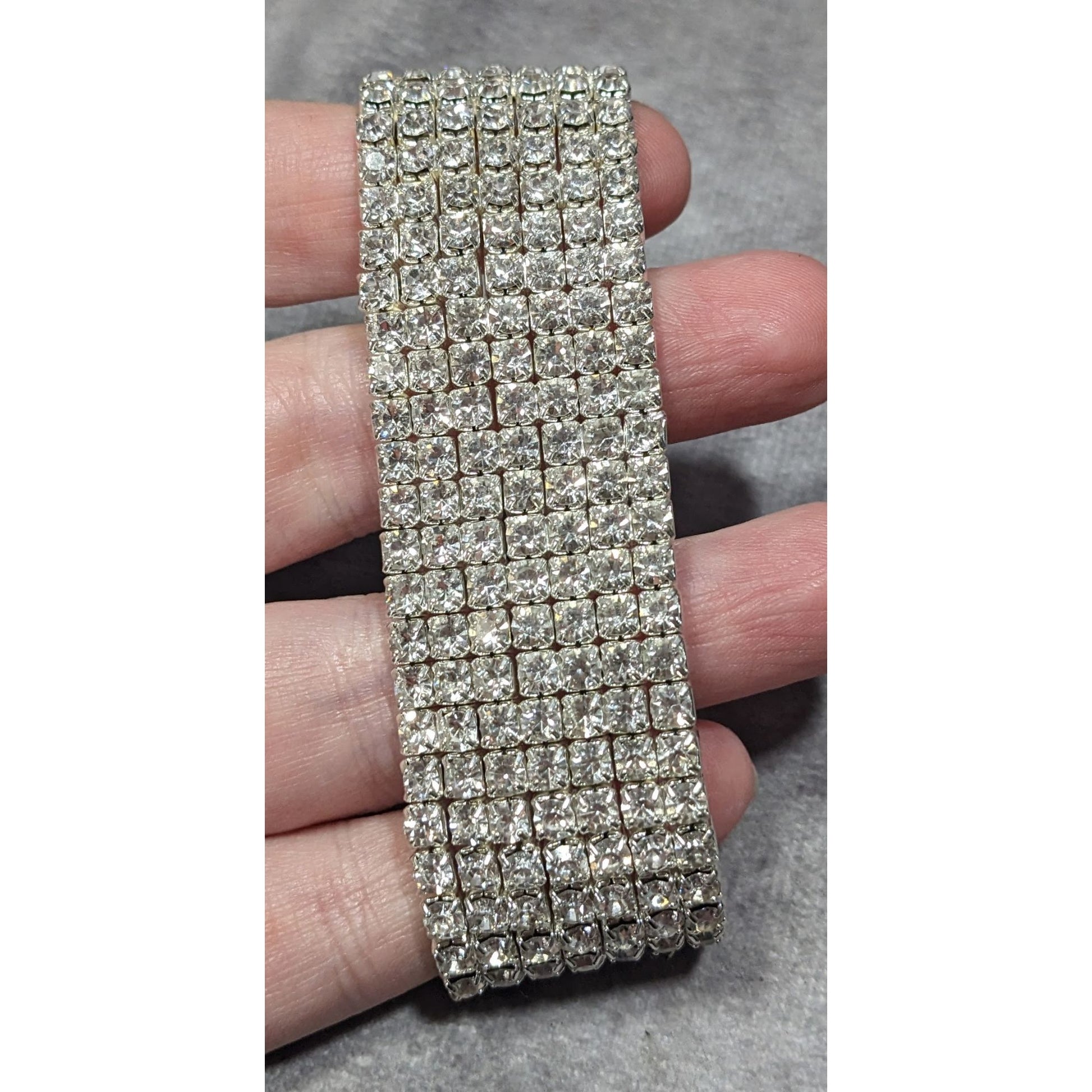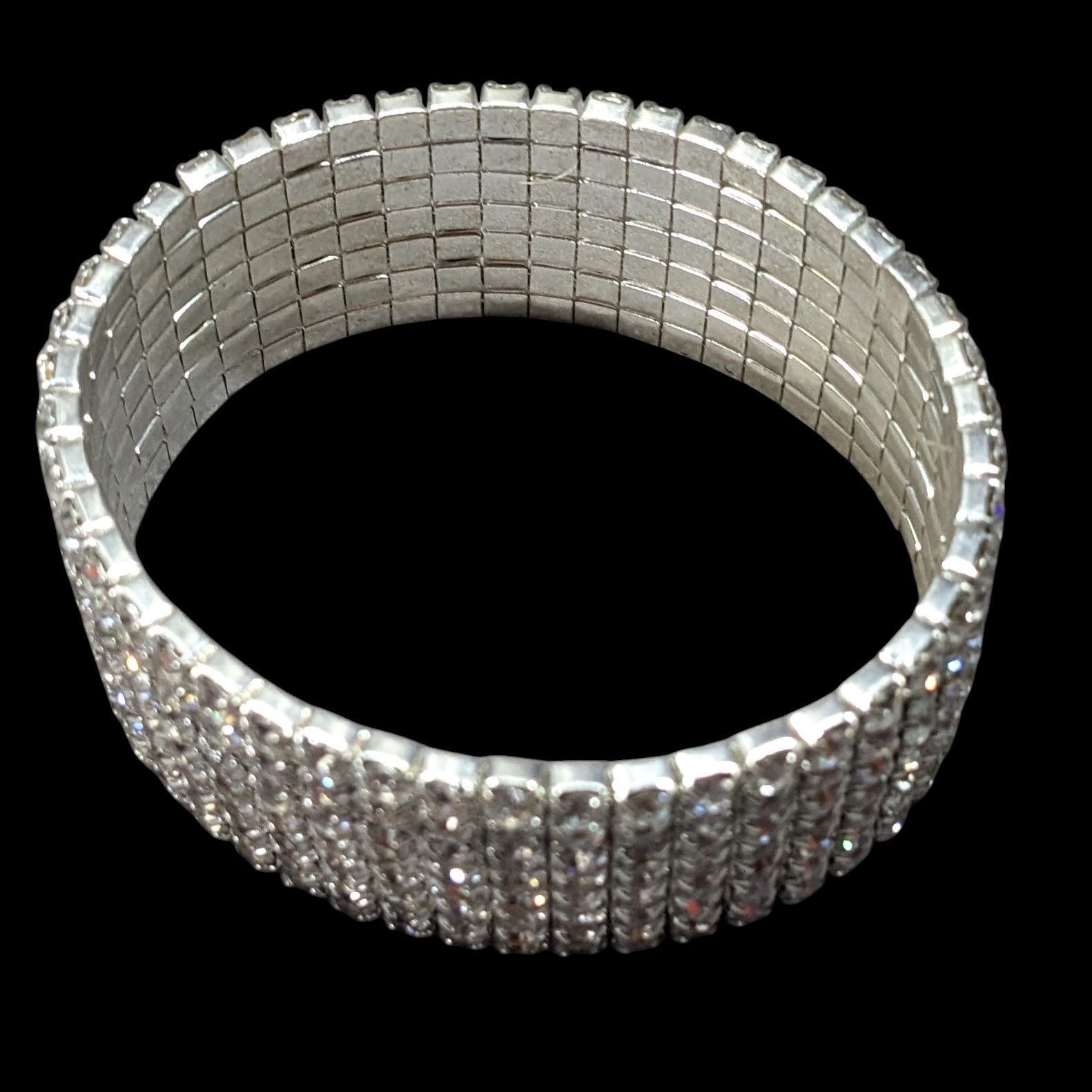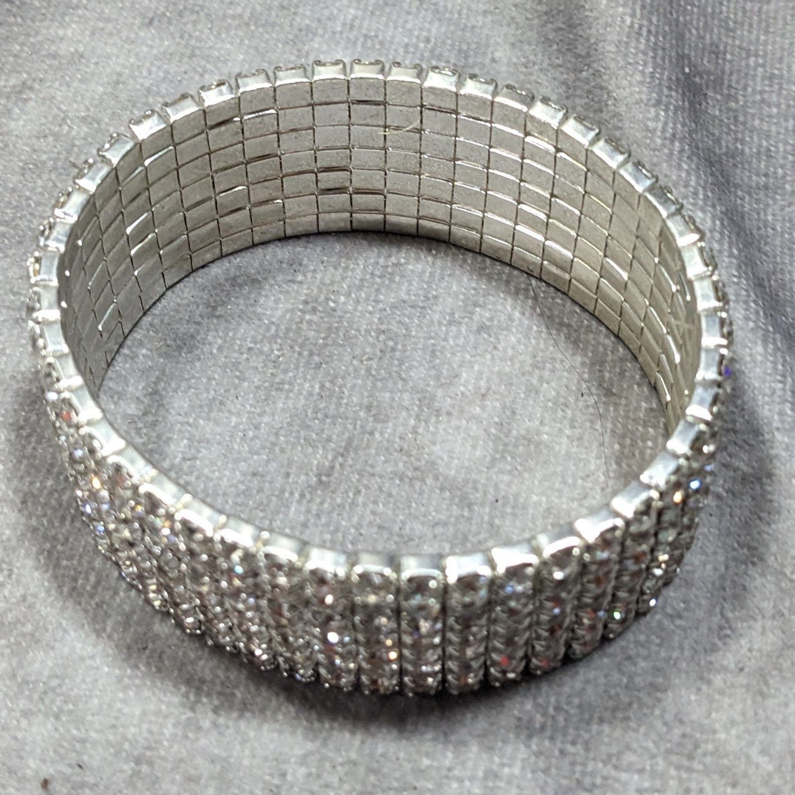 Vintage Glam 7 Row Rhinestone Silver Tone Stretch Bracelet