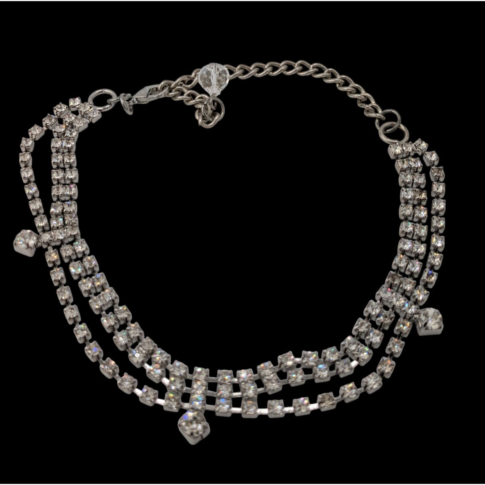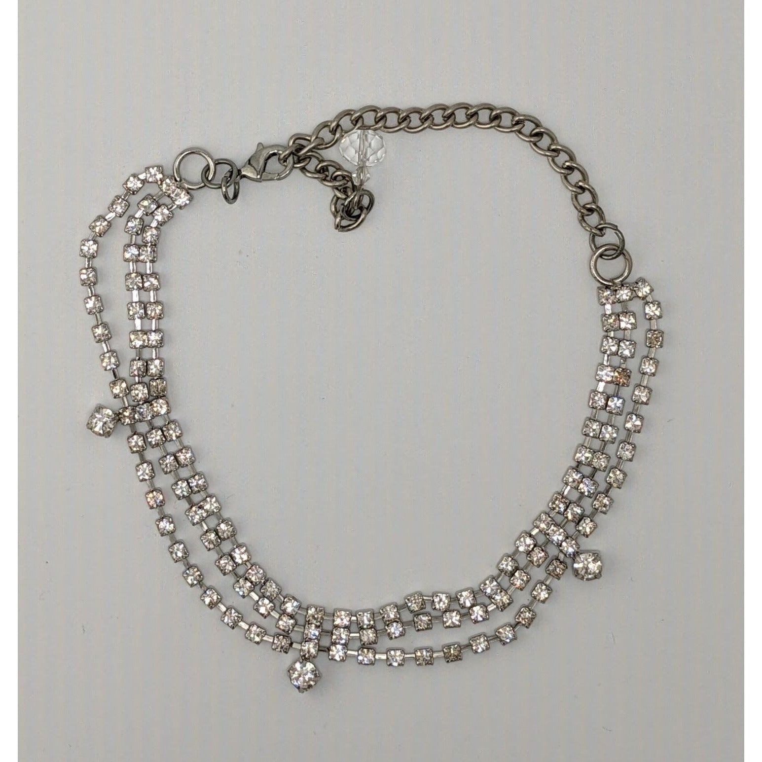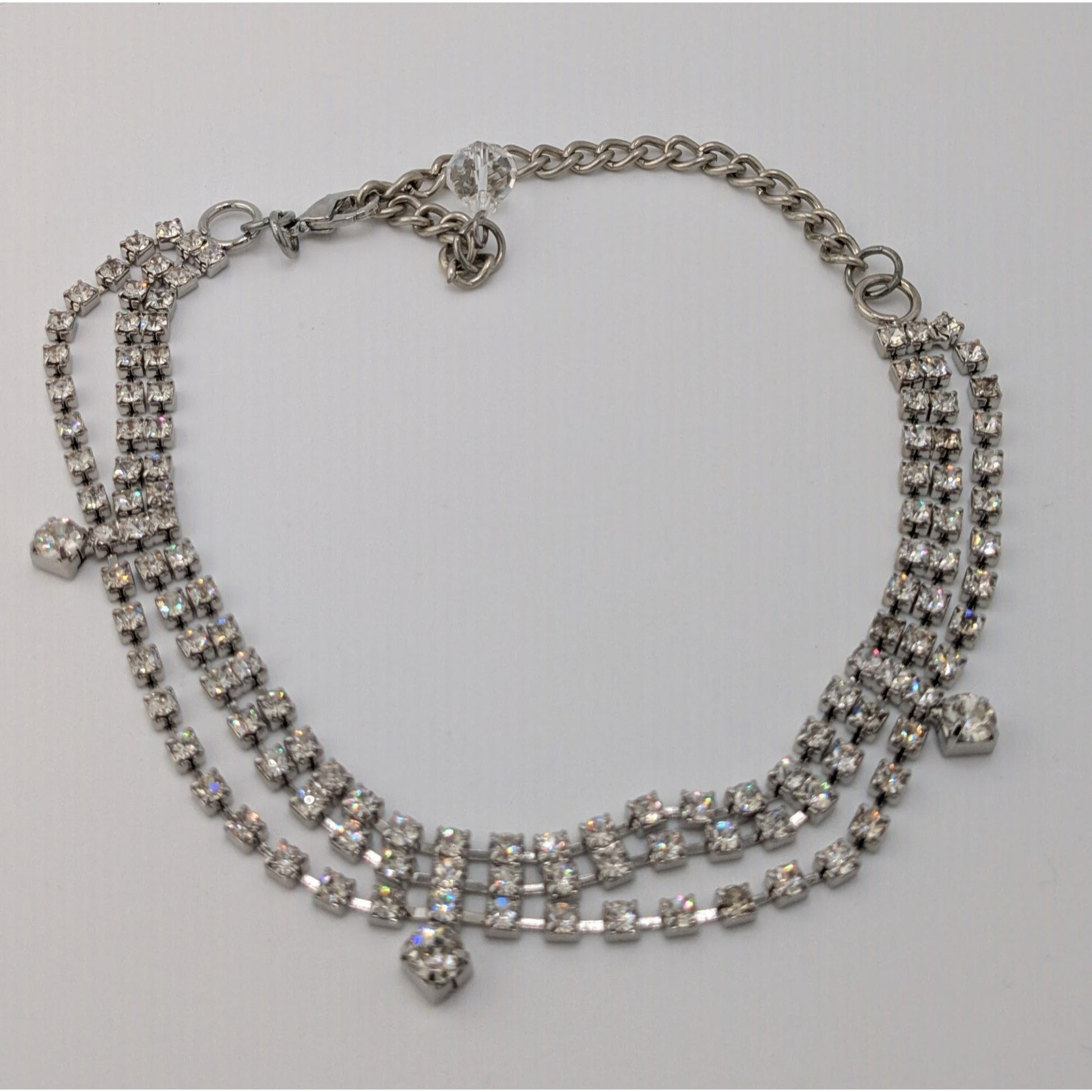 This vintage glam necklace features layered rhinestones for an elegant look. Perfect for dressing up any outfit, it captures the essence of timeless style. Ideal for special occasions or everyday wear.