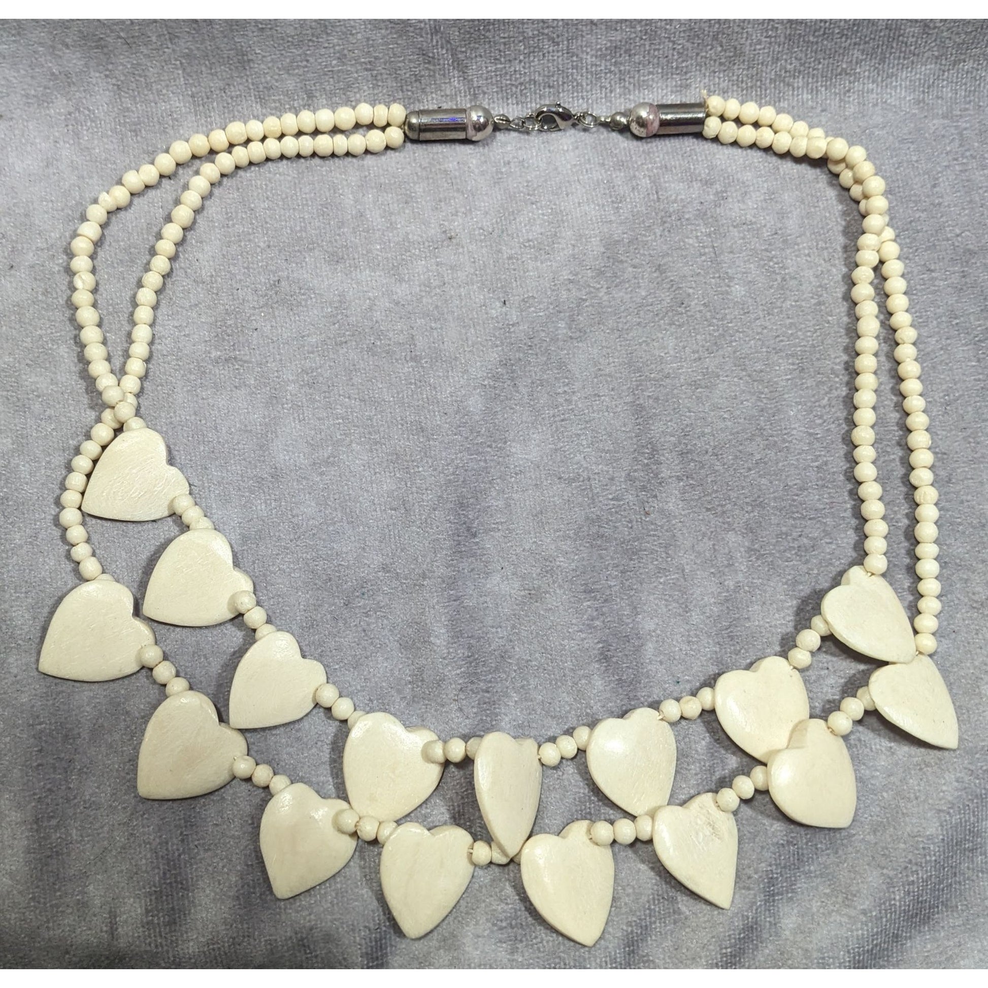 Vintage Hand Carved Heart Cow Bone Beaded Necklace