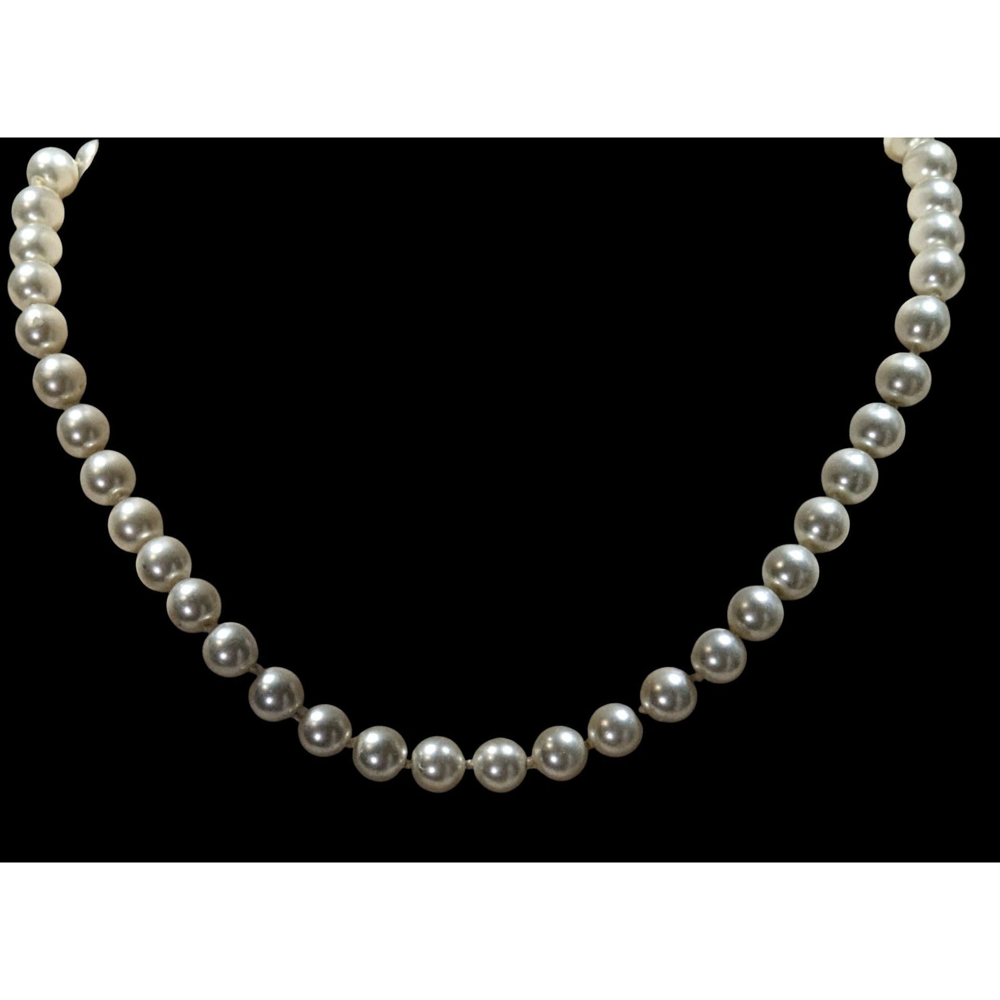 This exquisite vintage necklace features hand-knotted white faux pearls, offering timeless elegance and versatile styling for any occasion. Perfect for adding a touch of classic charm to your jewelry collection.