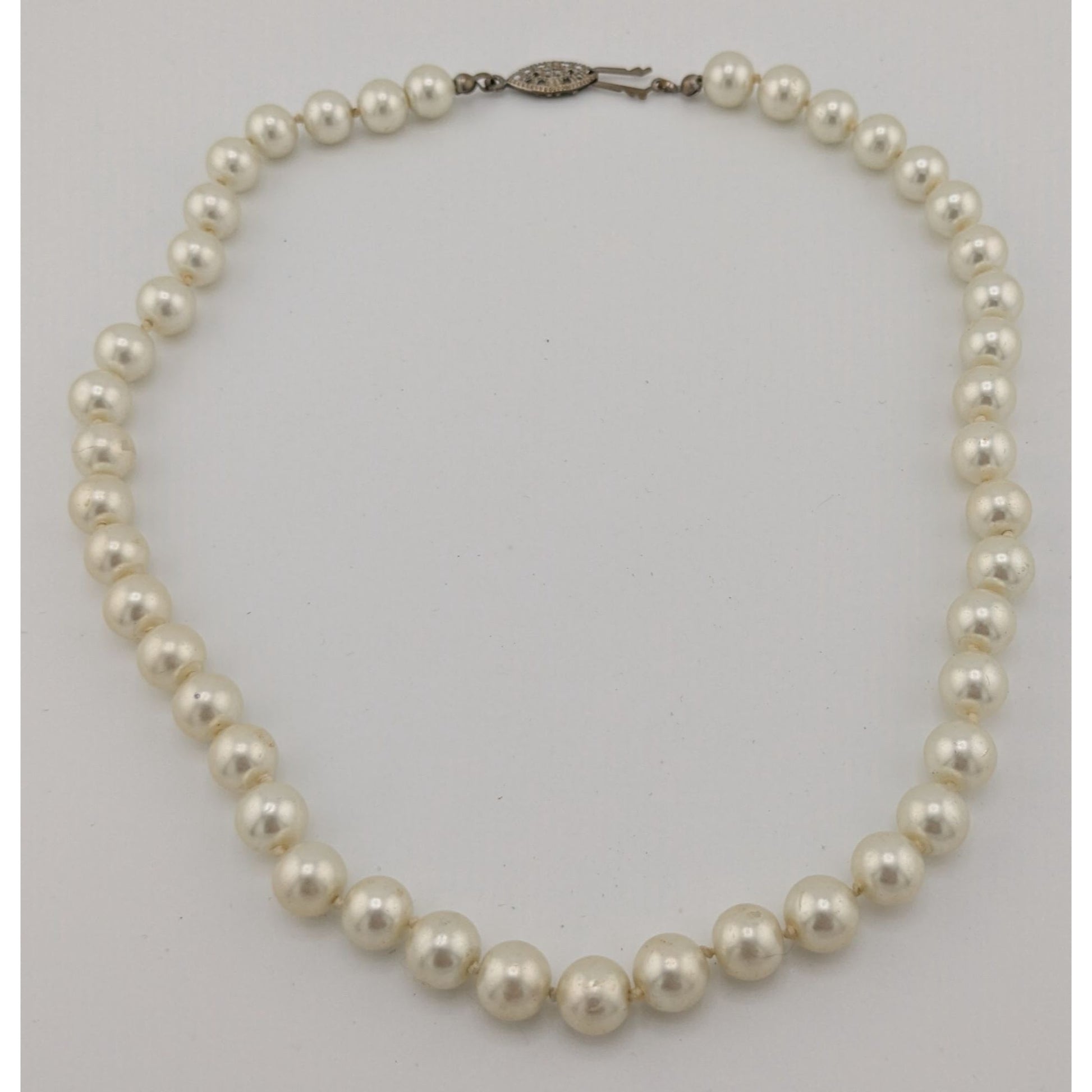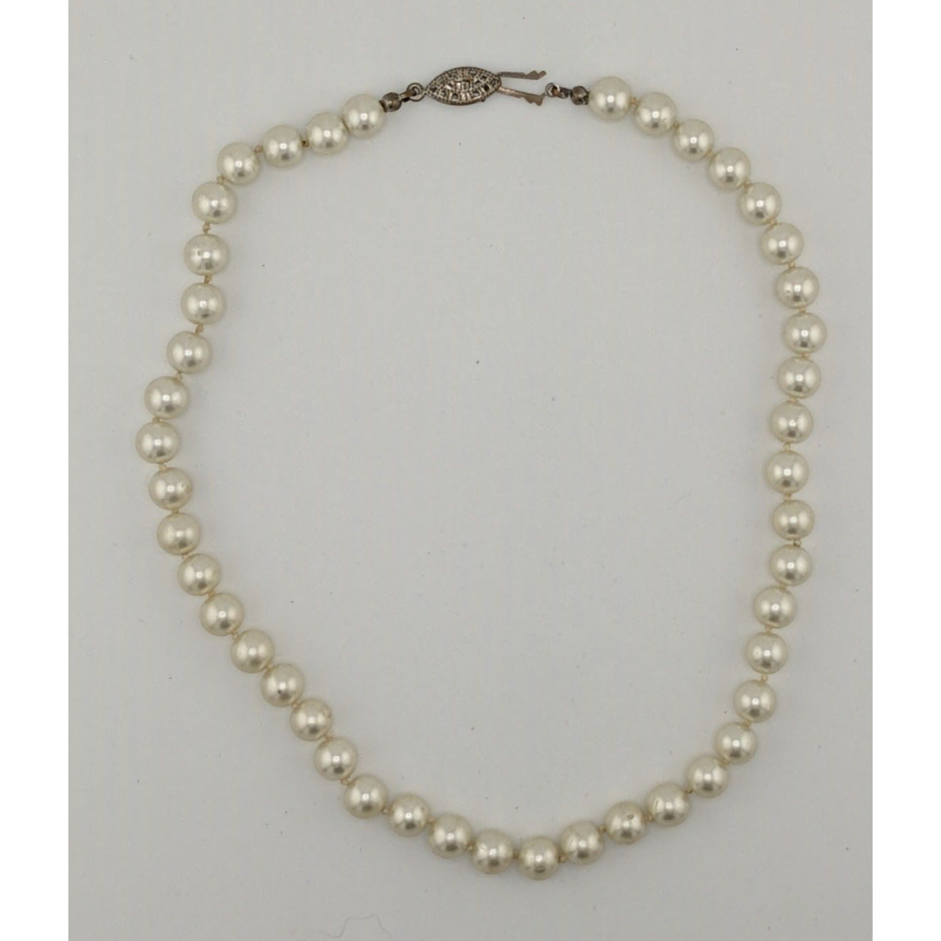 Vintage Hand Knotted White Faux Pearl Beaded Necklace