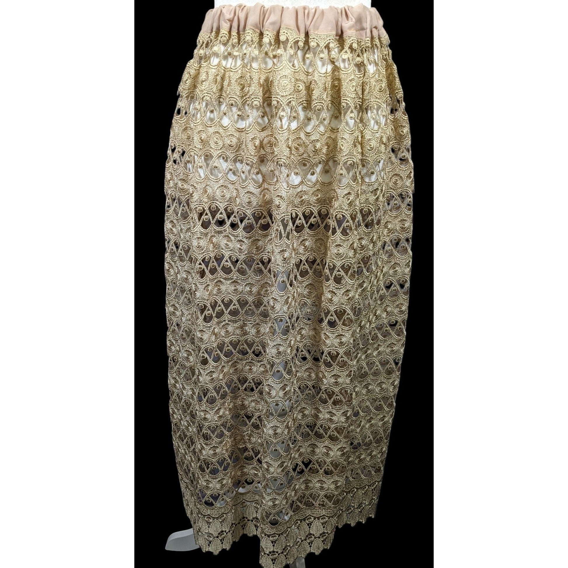 Vintage Handmade Crochet Lace Beige Maxi Skirt
