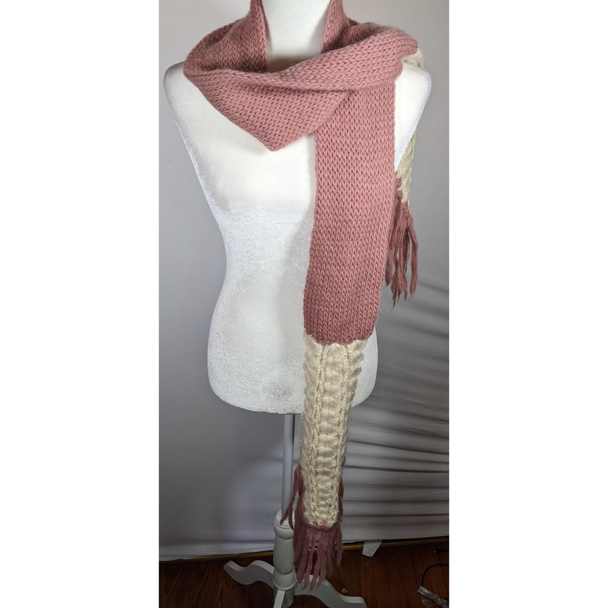 This exquisite vintage scarf features a handmade design with Victorian rose patterns in pink and cream. Perfect for adding a touch of elegance to any outfit.