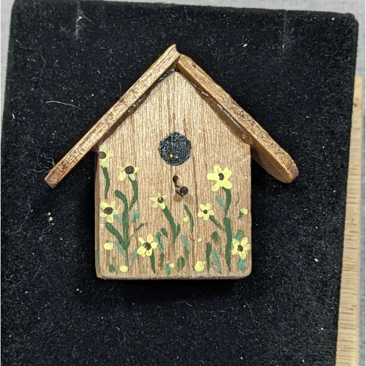 Charming vintage birdhouse brooch, handcrafted from wood with delicate painted accents. A unique accessory for nature lovers and vintage jewelry enthusiasts. Perfect as a gift or a special addition to your collection.