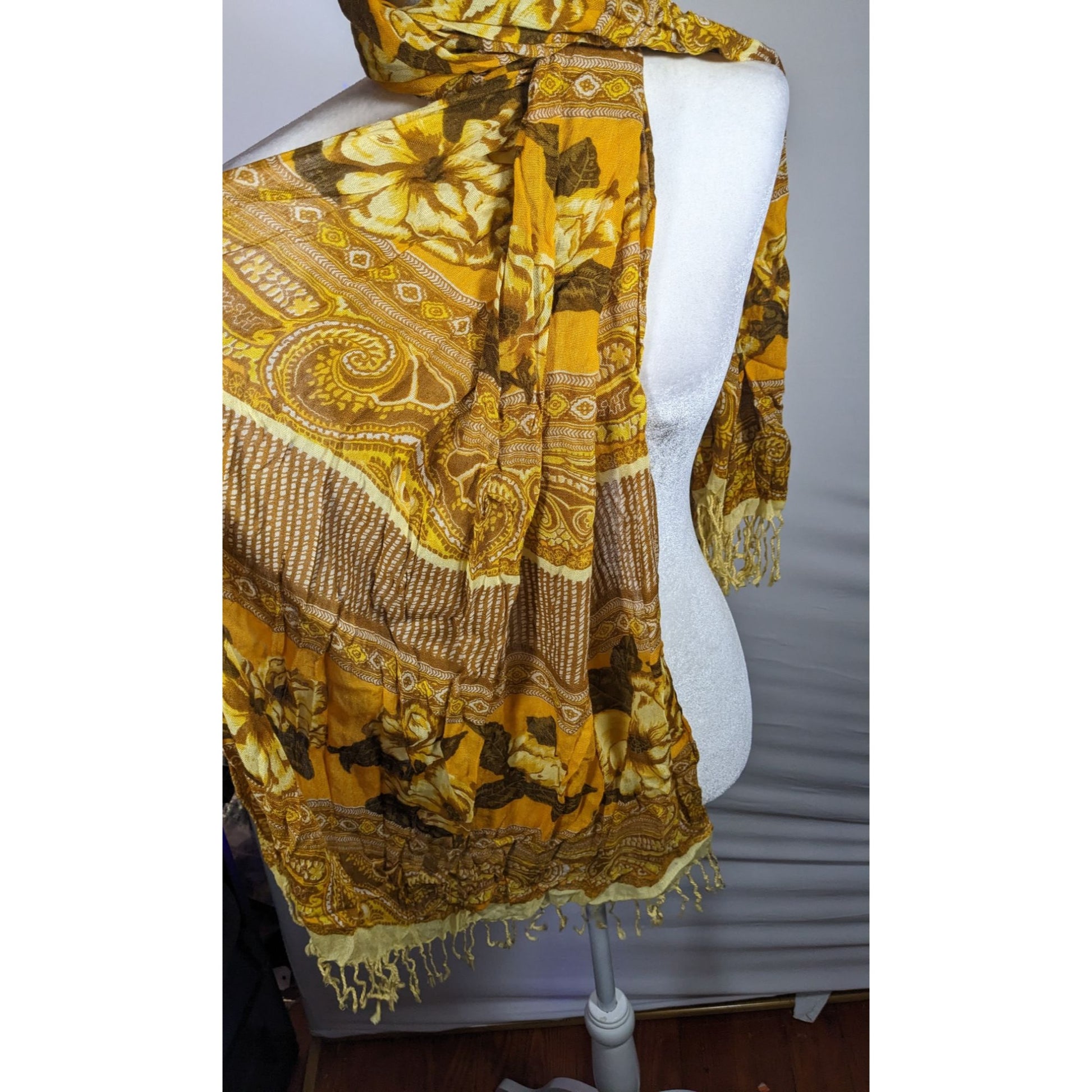Vintage Isaac Miazrahi Yellow And Brown Floral Paisley Fringe Scarf