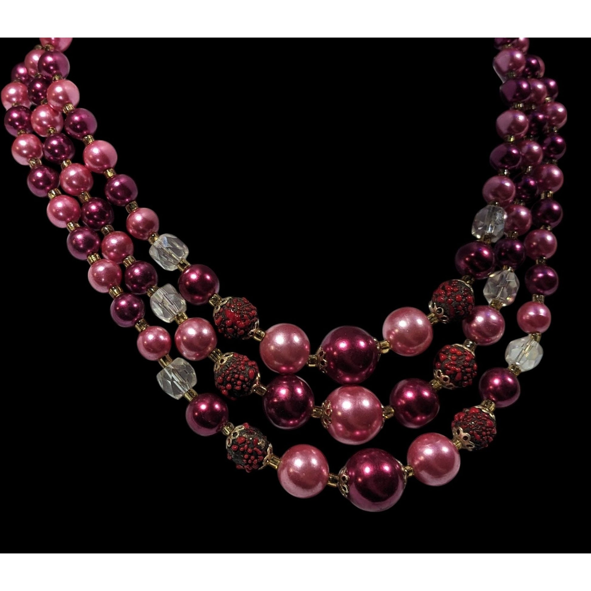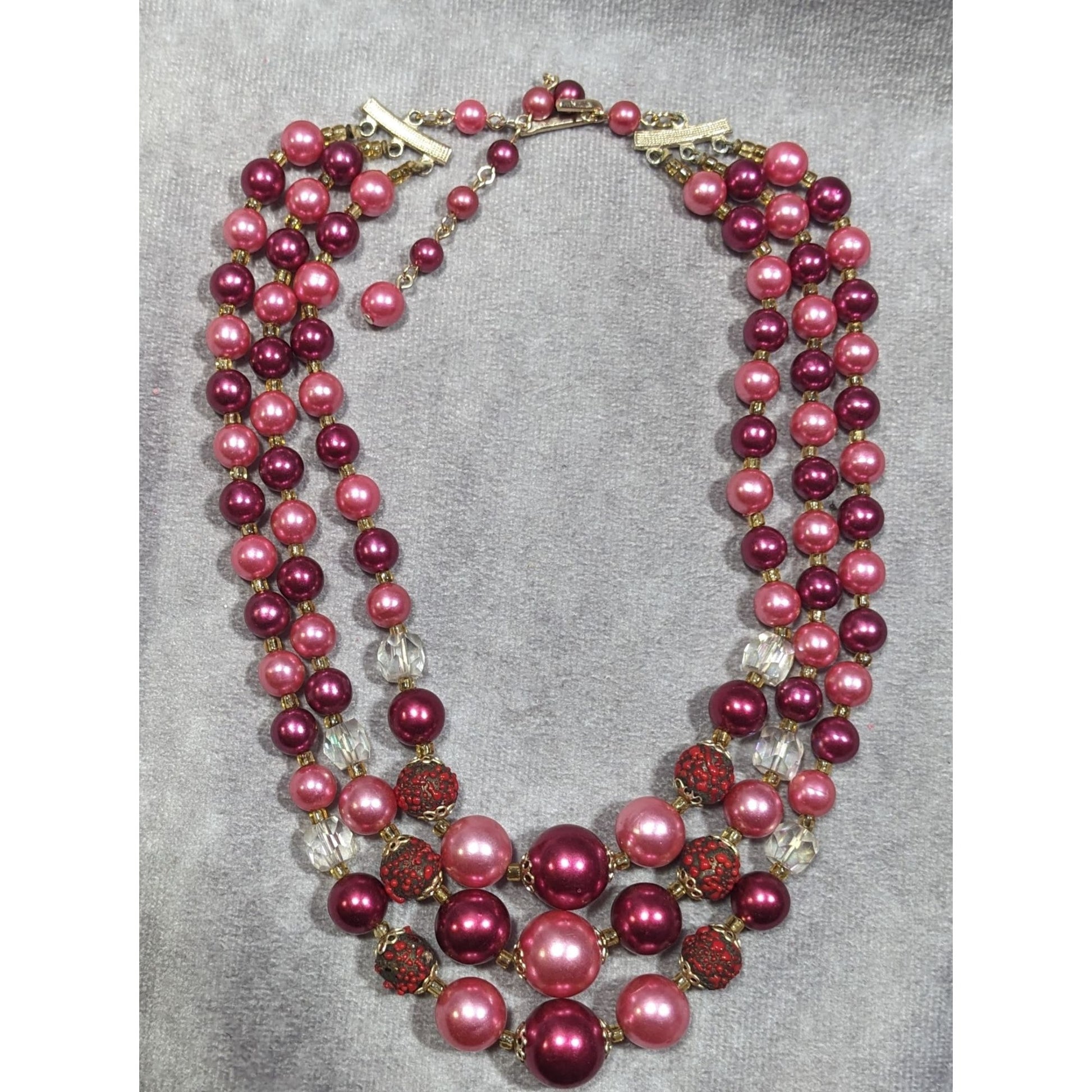 Vintage Japan Pink And Red Metallic Beaded Multilayer Necklace