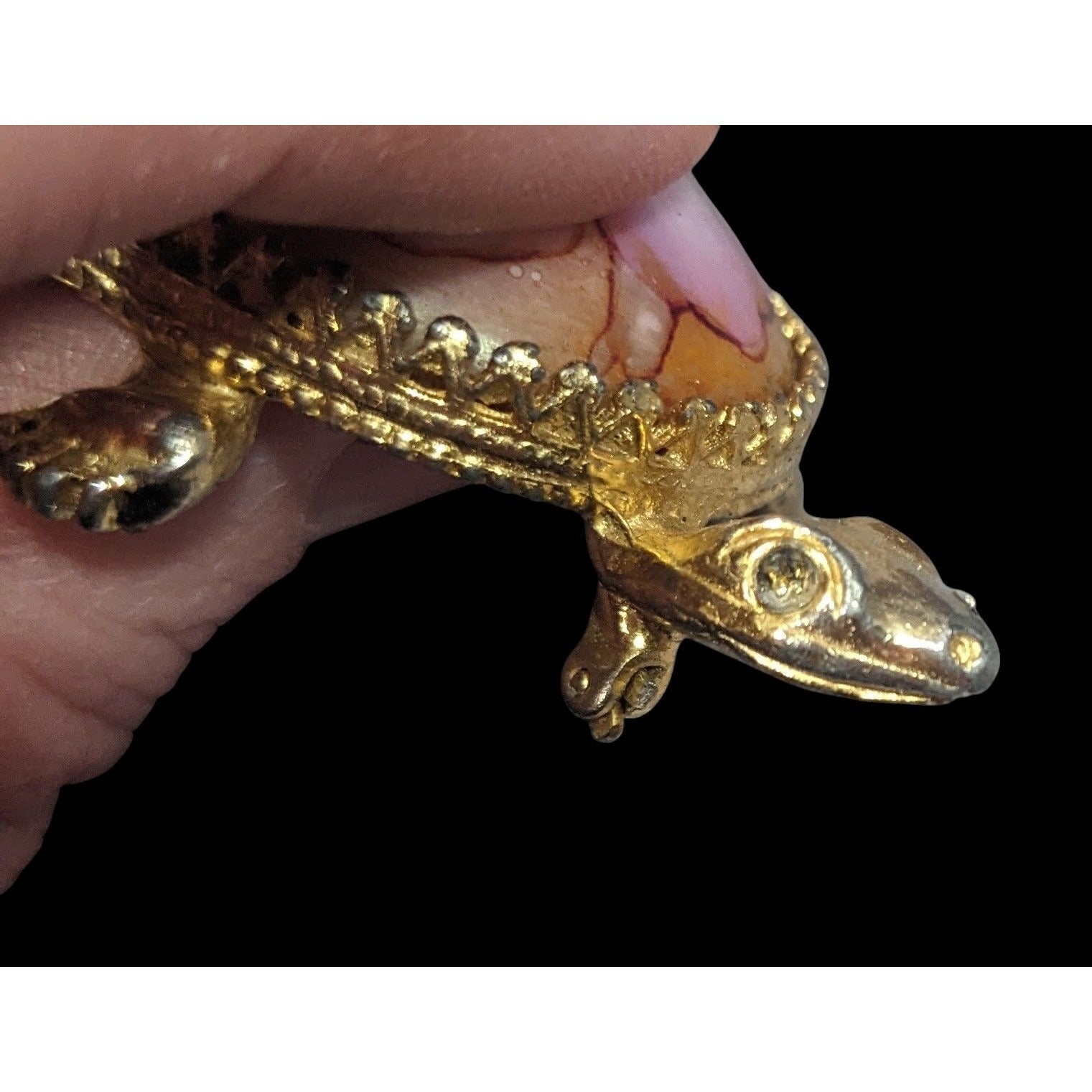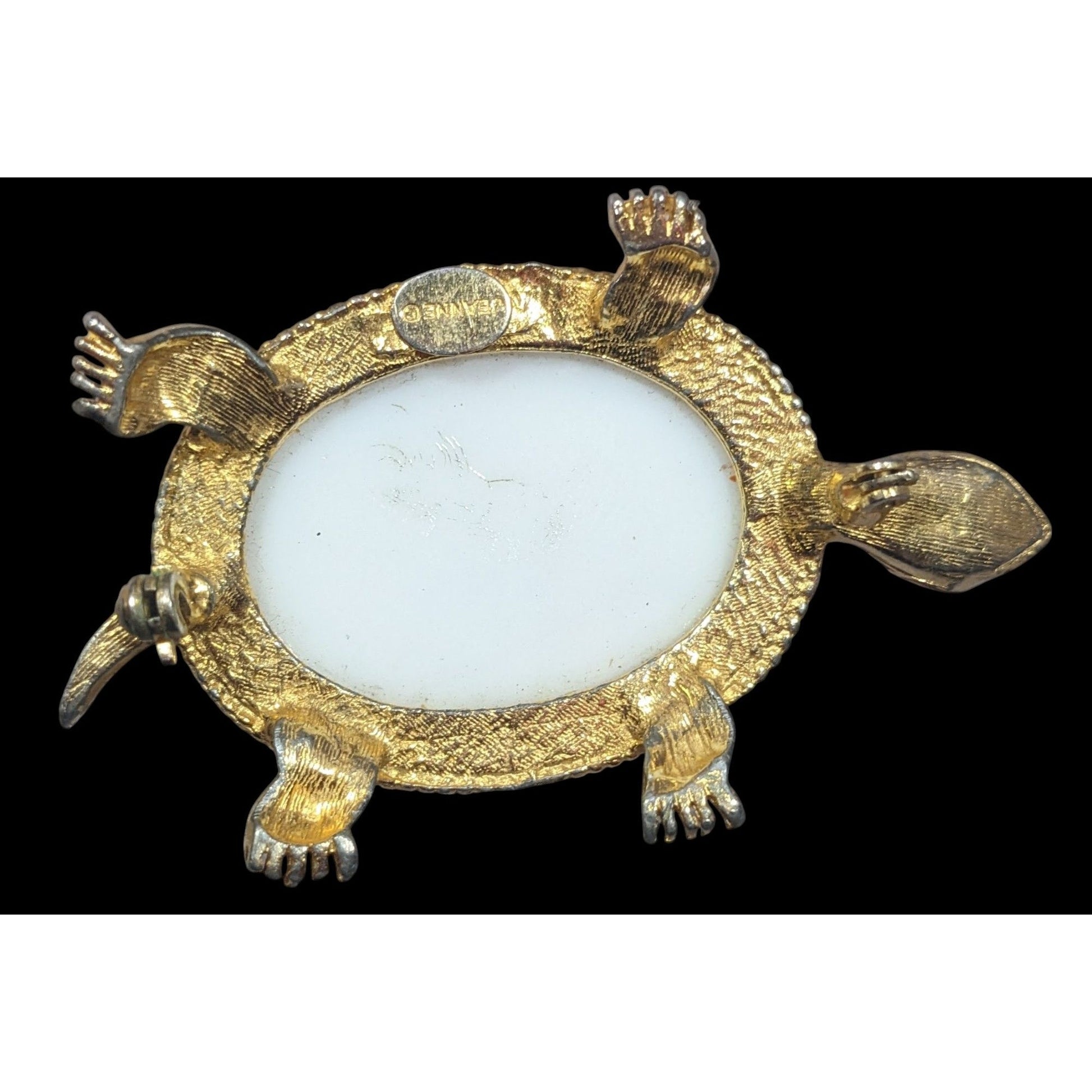 Vintage Jeanine Pink Orange And Gold Turtle Brooch (Broken)