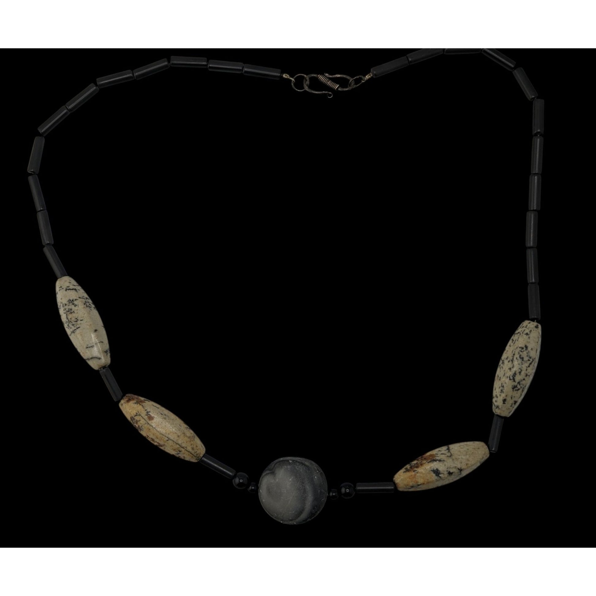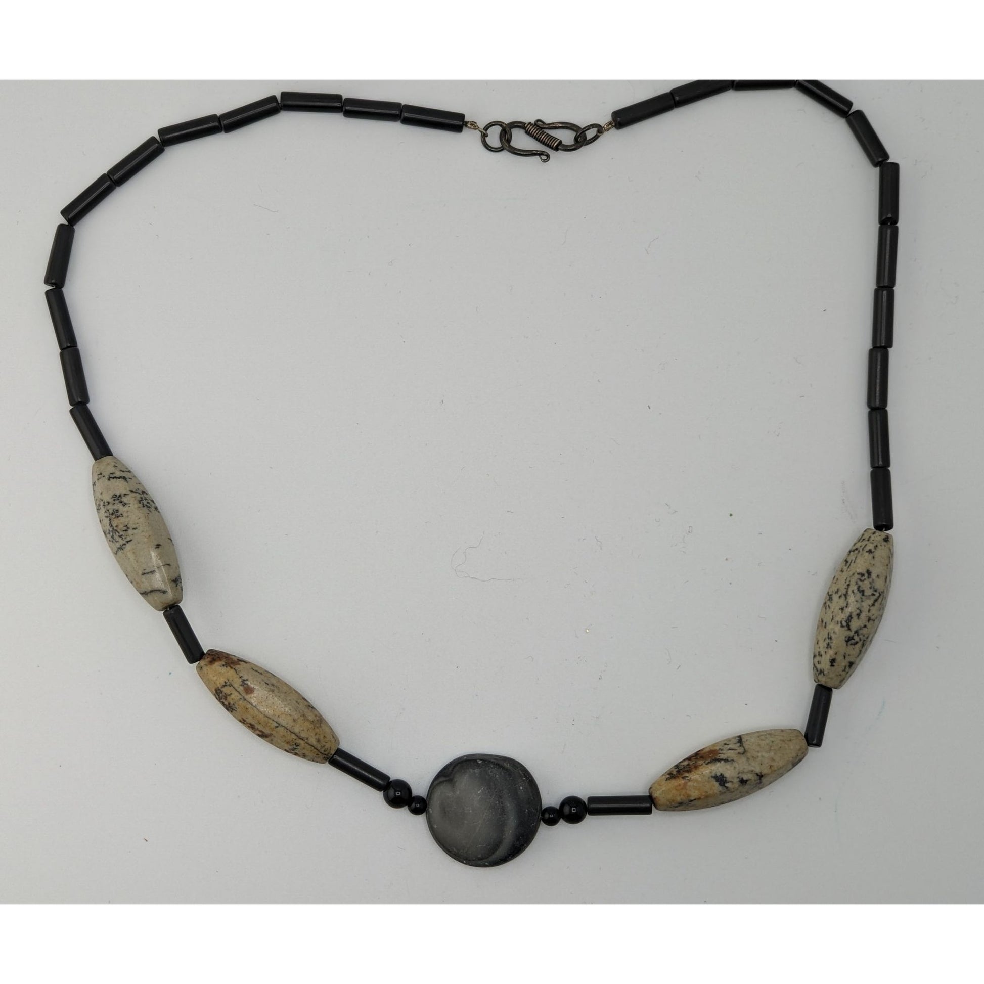 This timeless necklace tells a story of nature’s artistry, featuring earthy tones in smooth stones. Its 21-inch length and secure hook clasp make it a versatile and elegant addition to any jewelry collection.