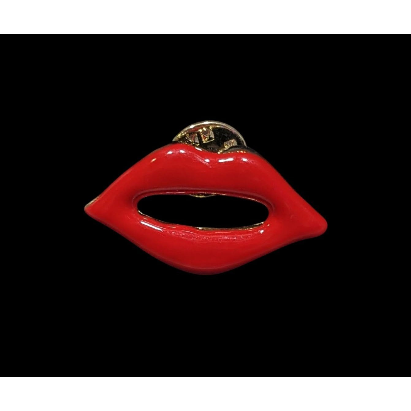 Vintage Open Red Lips Enamel Over Gold Tone Metal Lapel Pin