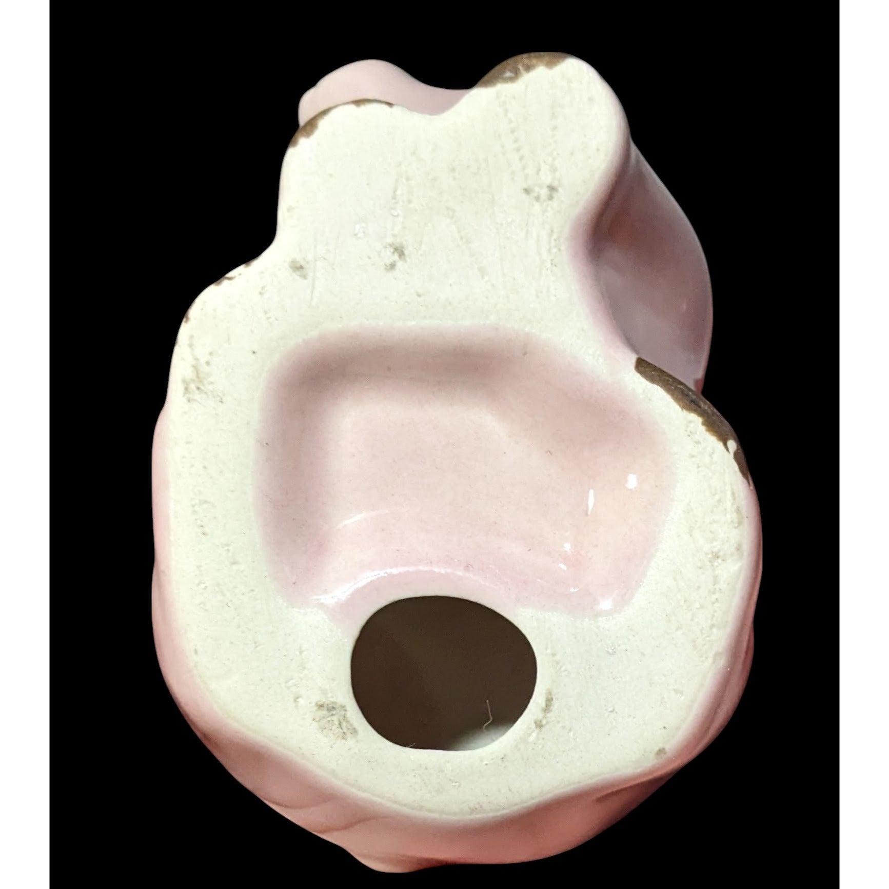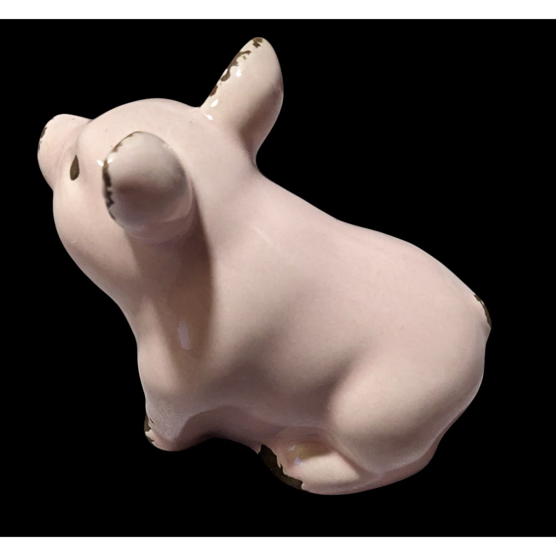 Charming vintage porcelain pig figurine in pink and brown hues. Perfect for collectors or as a decorative piece. Its delicate craftsmanship adds a whimsical touch to any space.