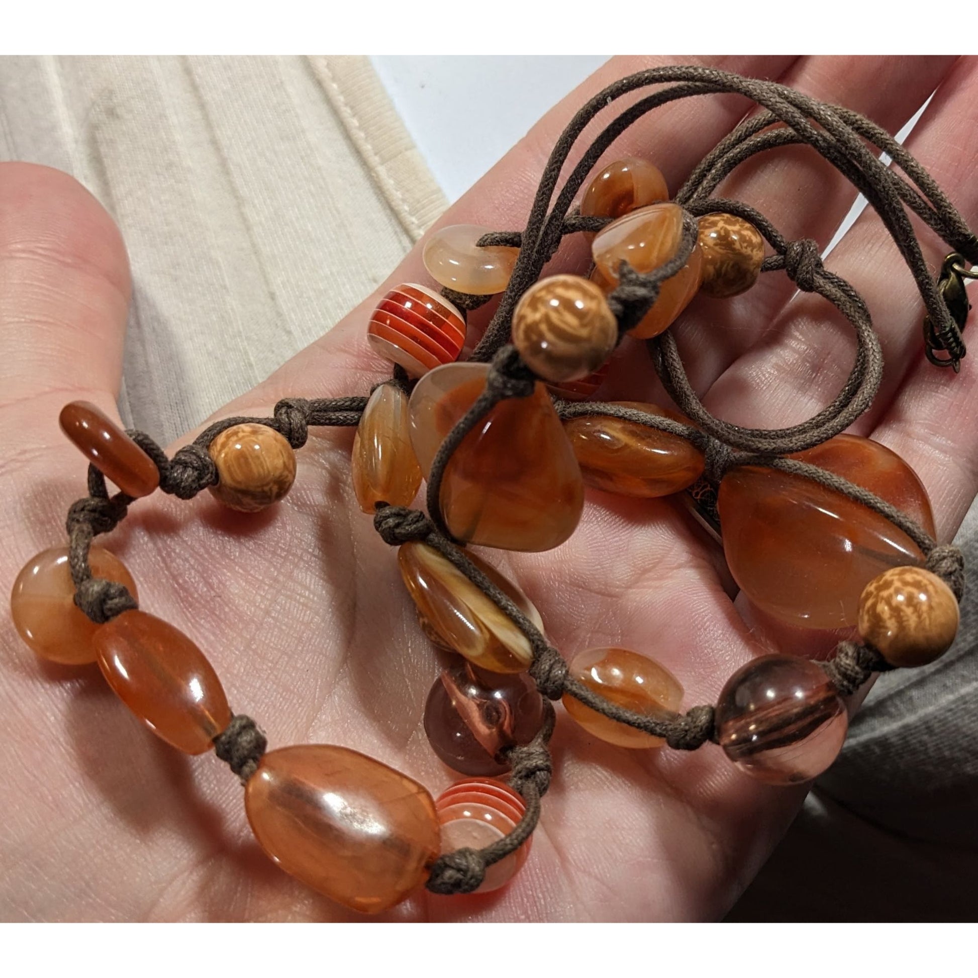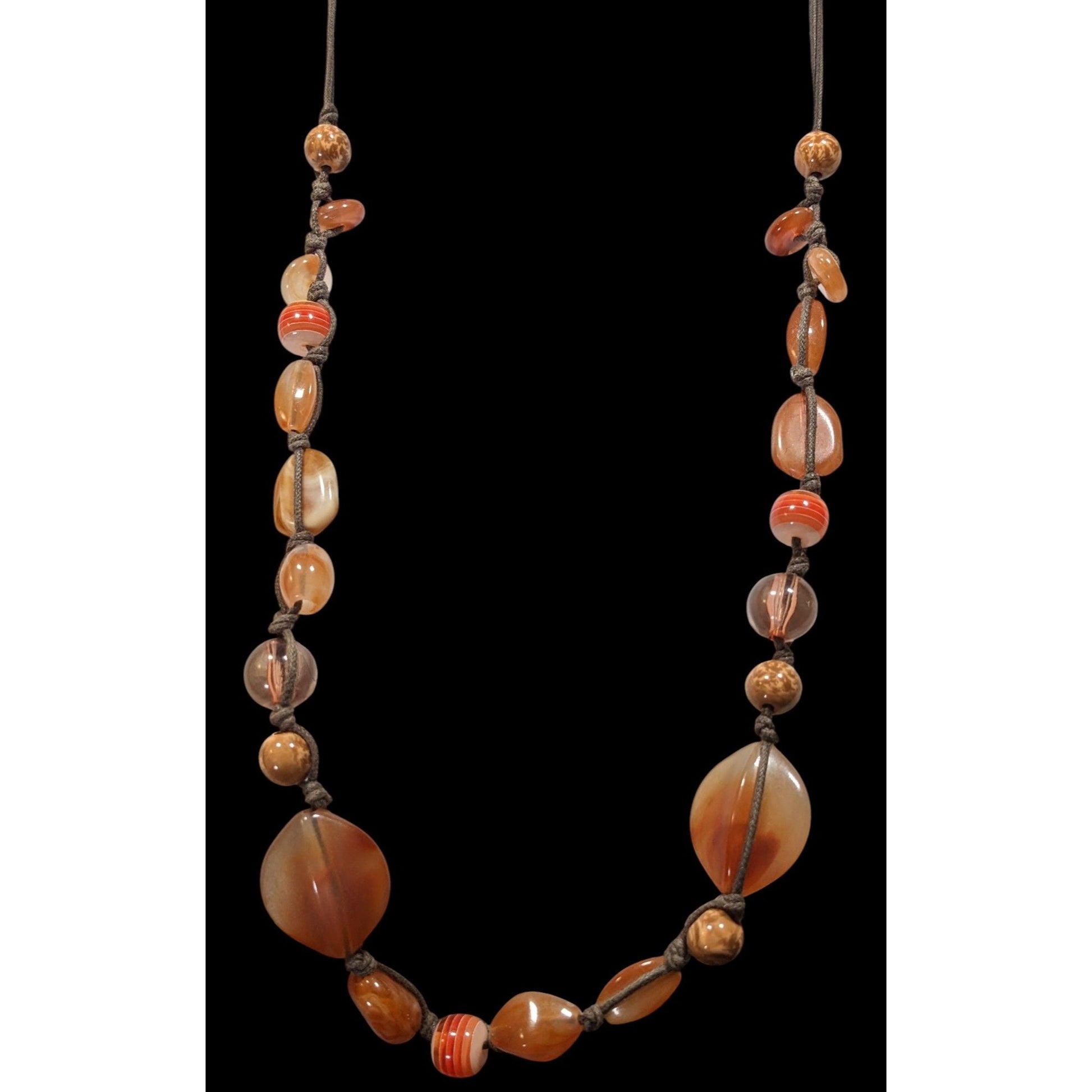 Vintage Retro Orange And Brown Acrylic And Glass Necklace