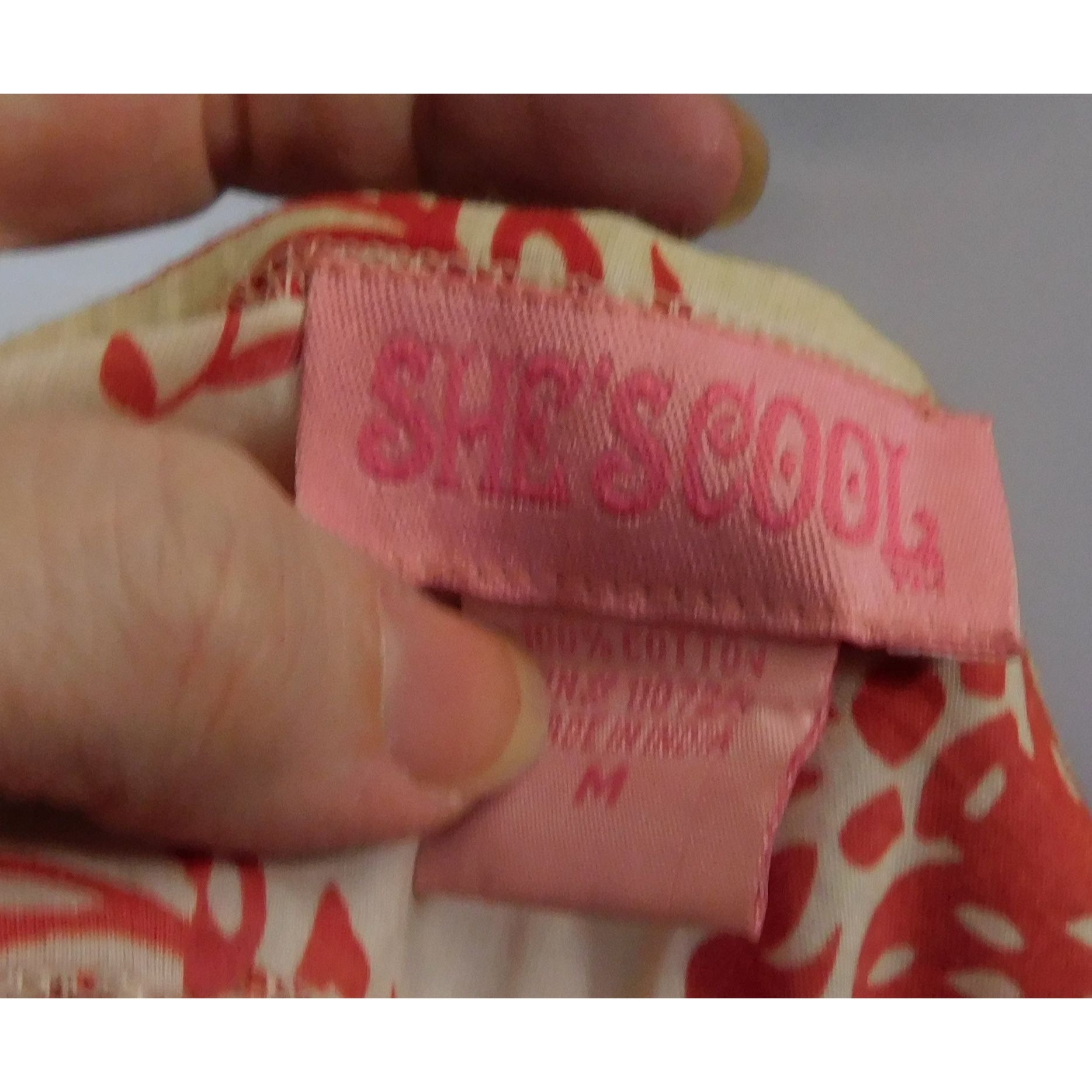 It's made of 100% cotton fabric in white, with a red floral print. It has adjustable spaghetti straps, and a V neck. The waist is ruched, but very stretchy so it stretches to fit. The bottom fans out to a nice width, giving this a very romantic look. Great for spring and summer, parties, and beachy looks!