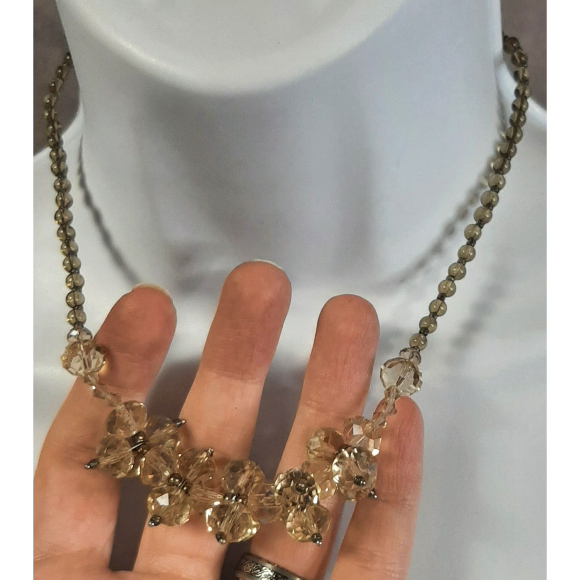 Vintage Smoky Glass Beaded Necklace With Cluster Accents