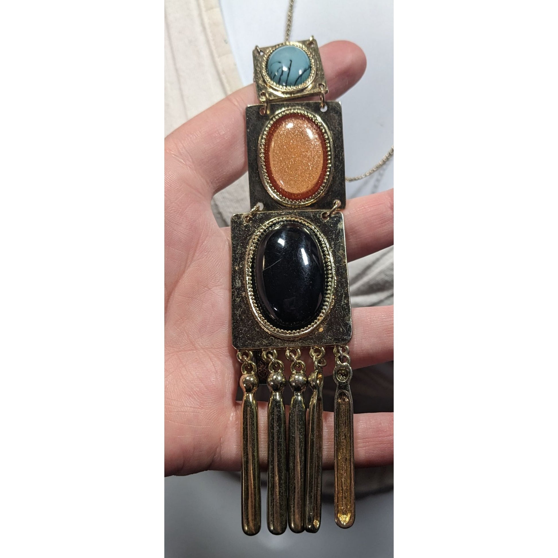 Vintage Southwestern Pendant Necklace With Faux Stone Cabochons