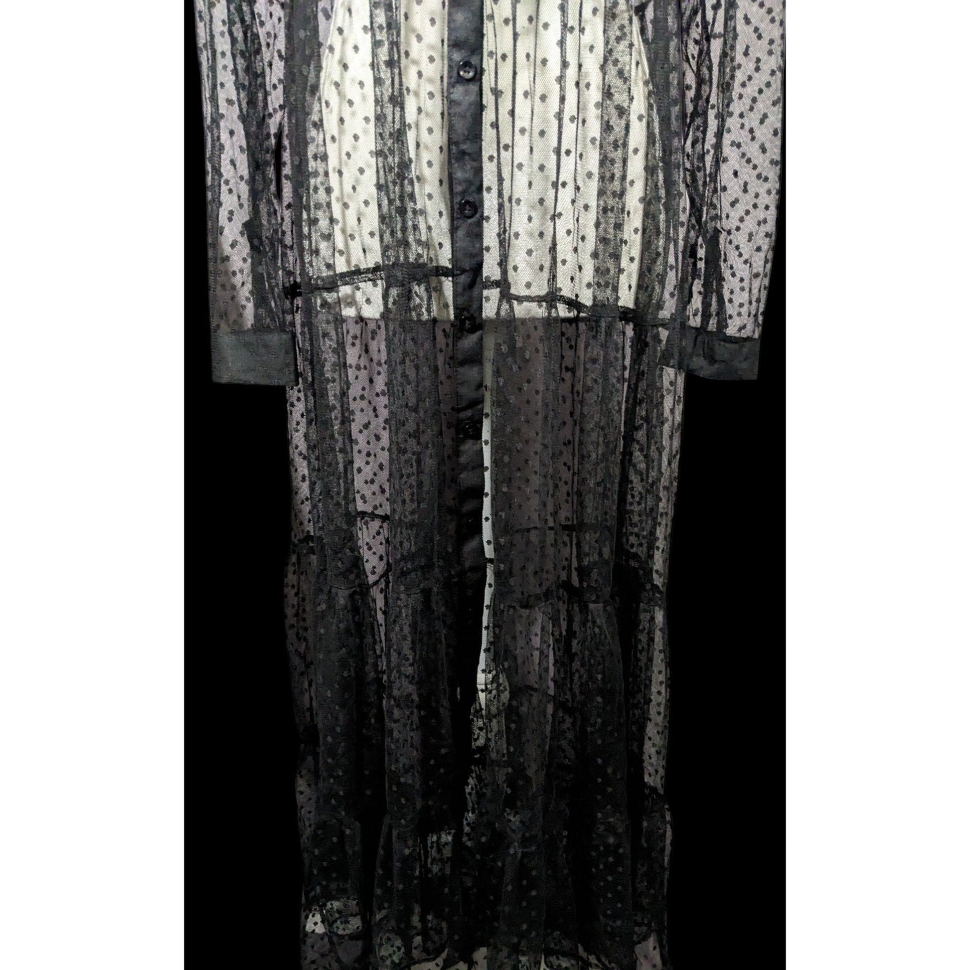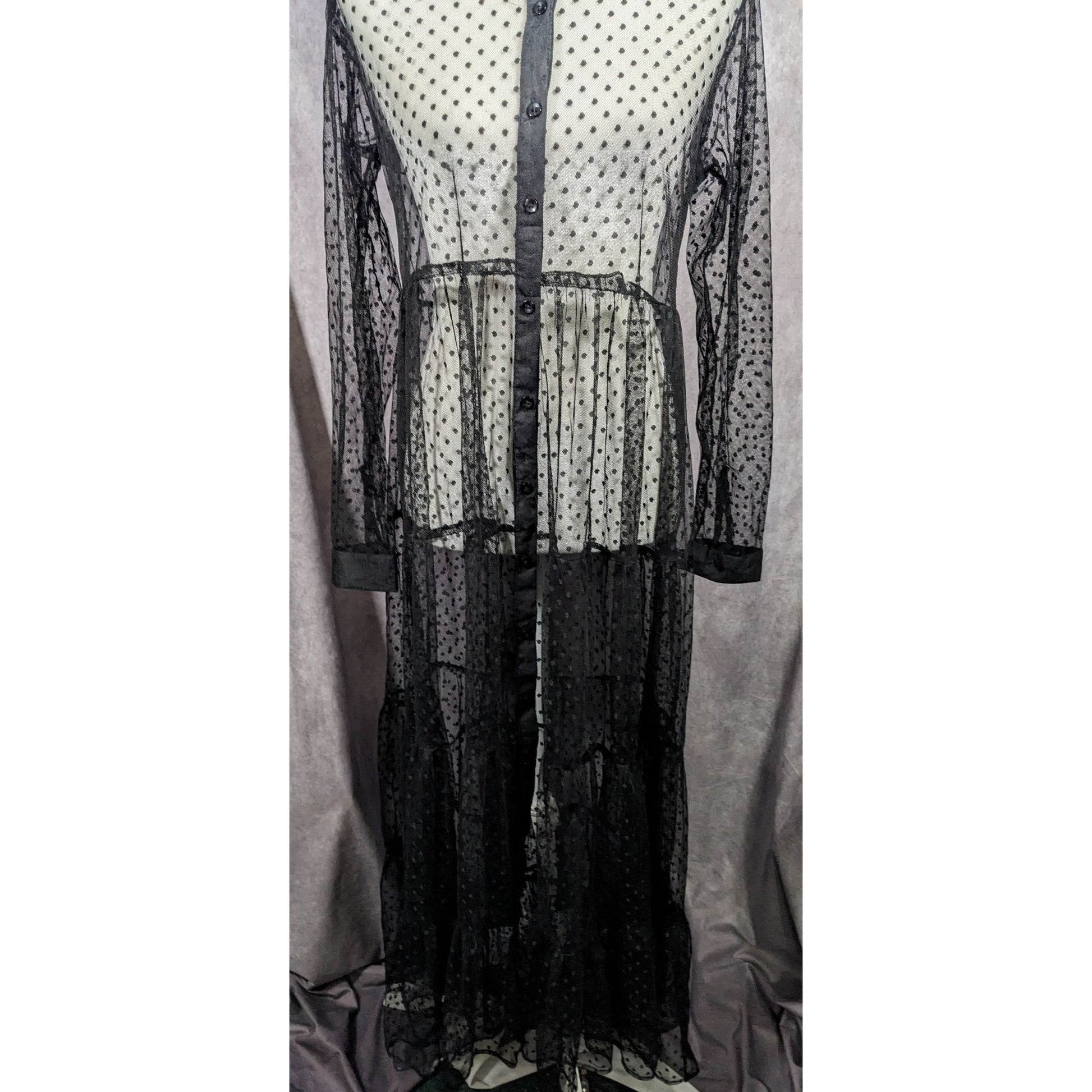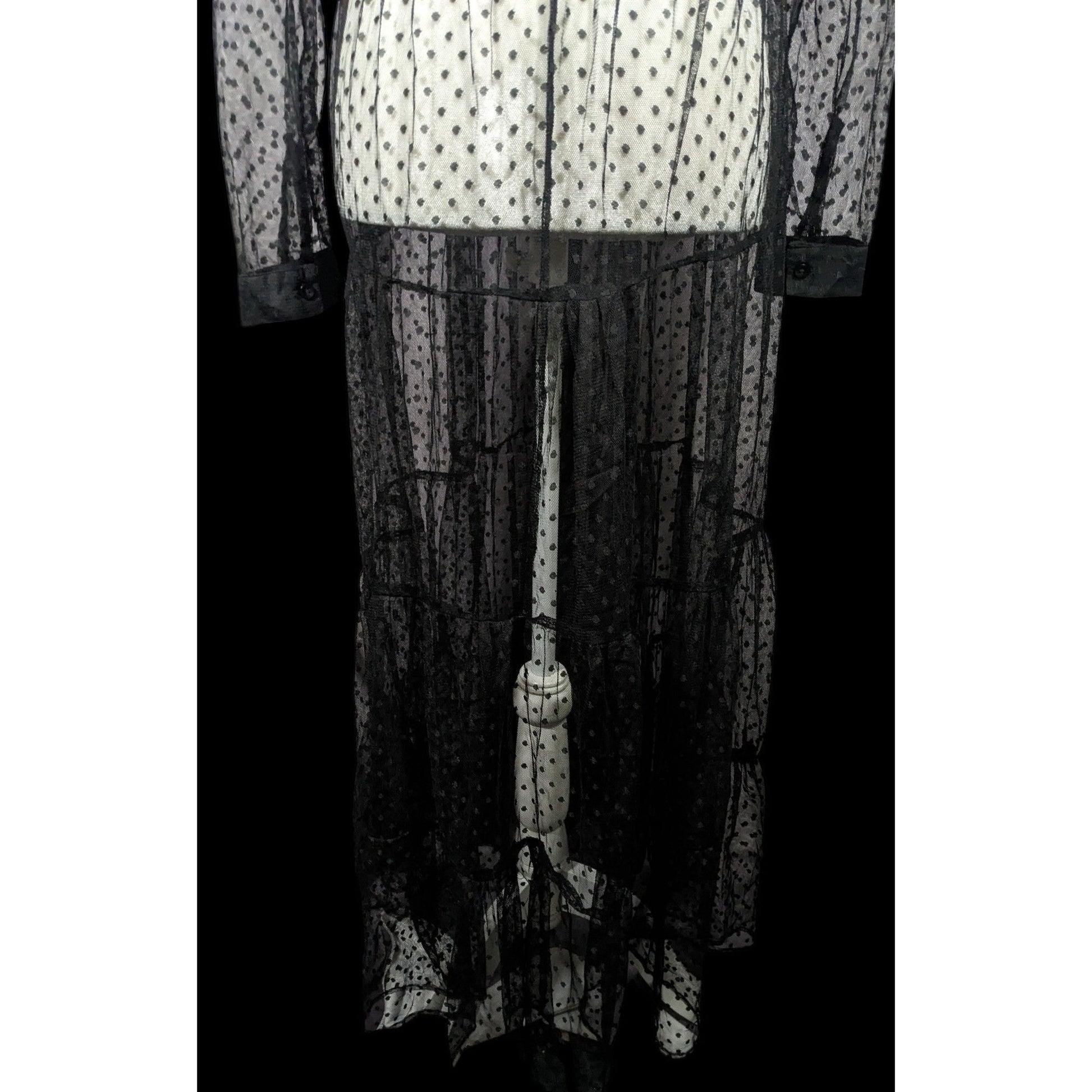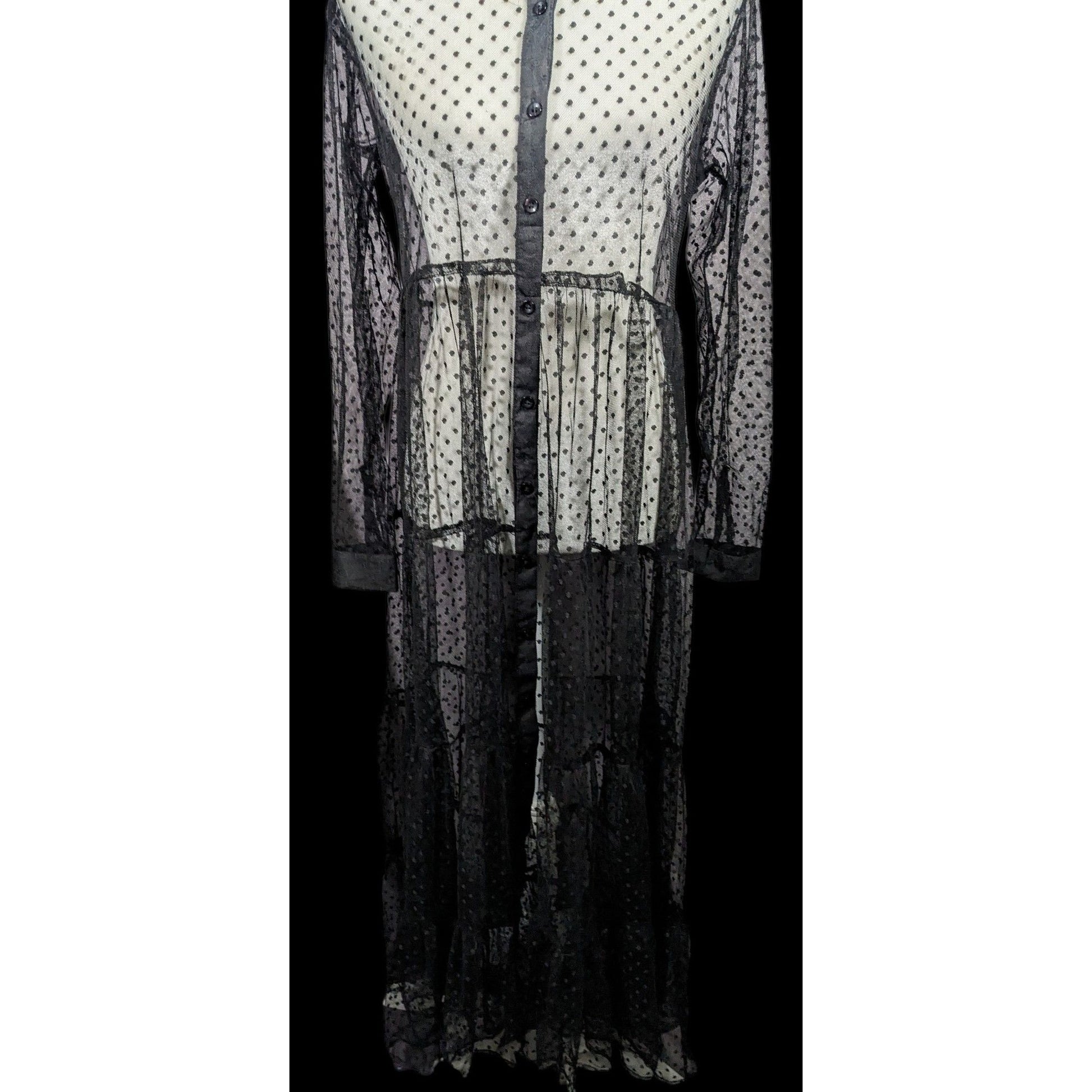 Vintage Spoon Jeans Sheer Black Polka Dot Maxi Dress