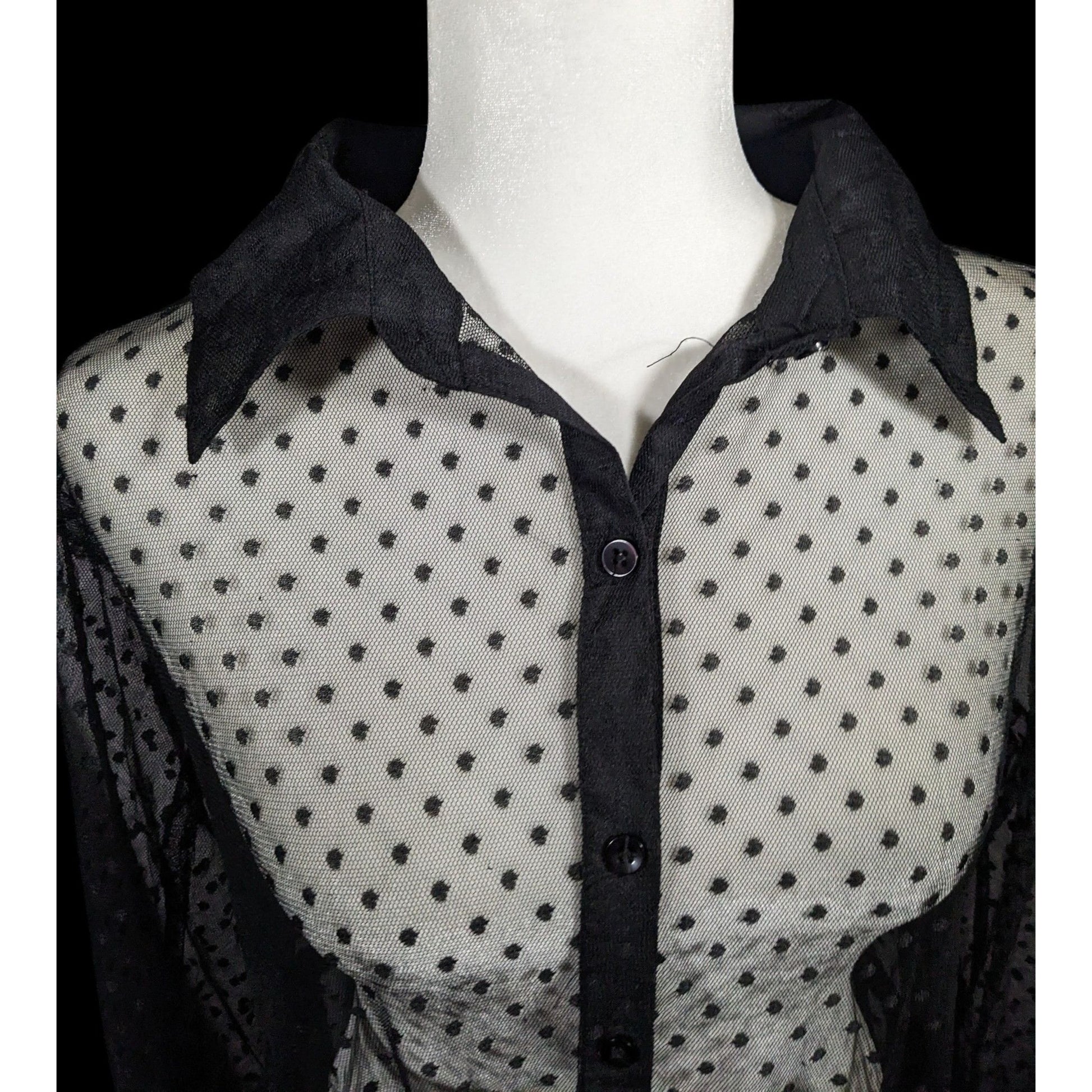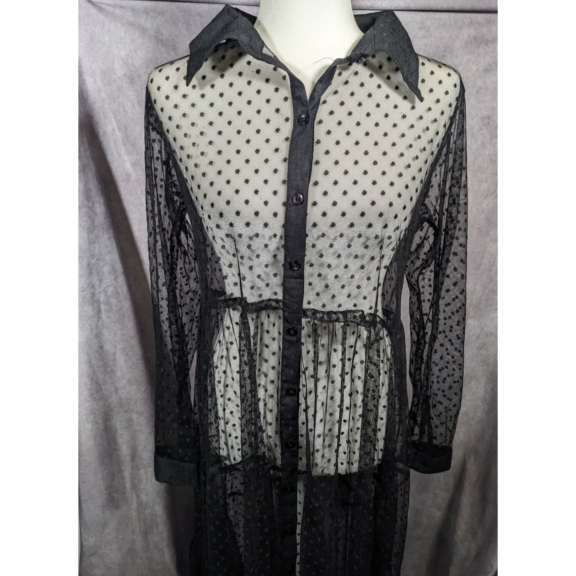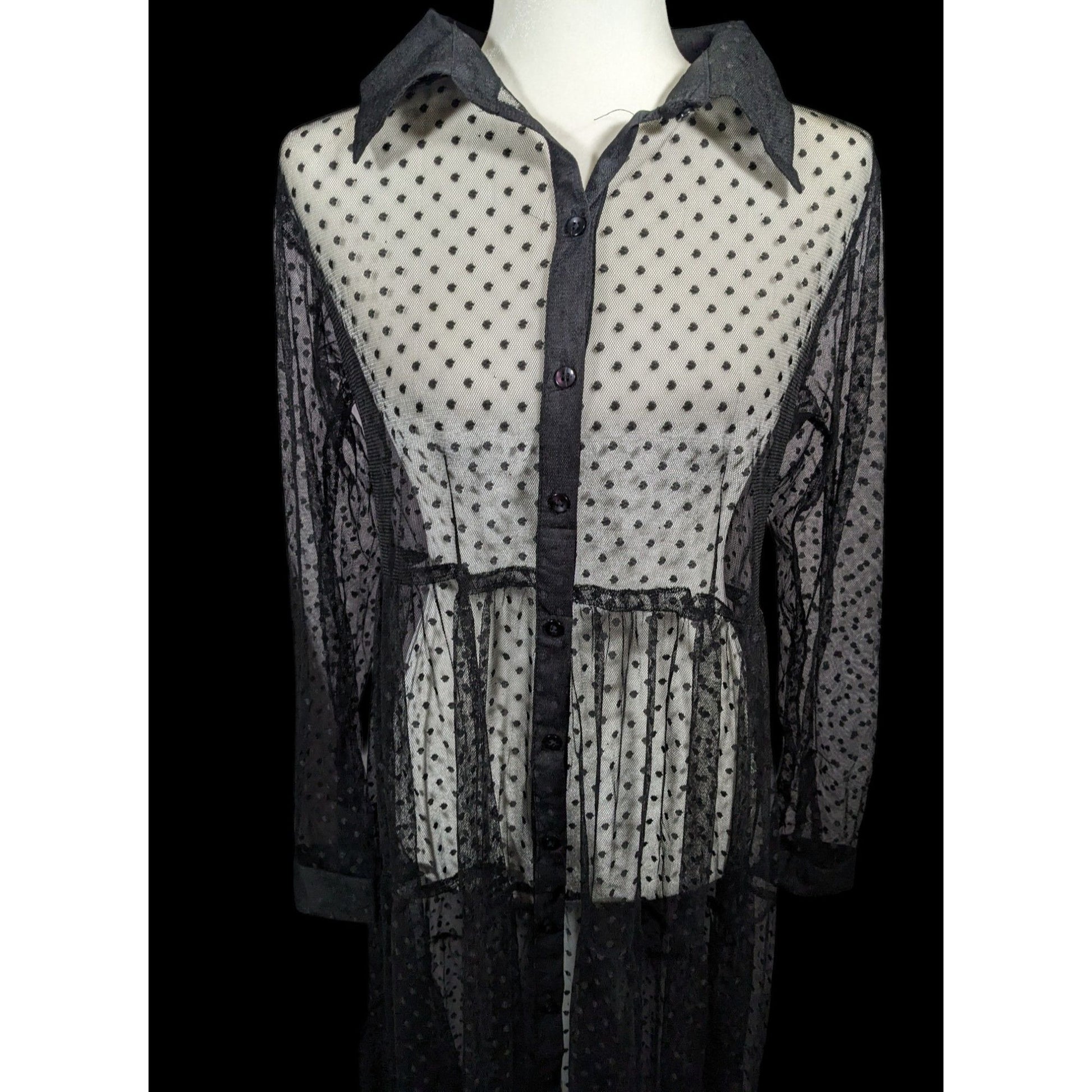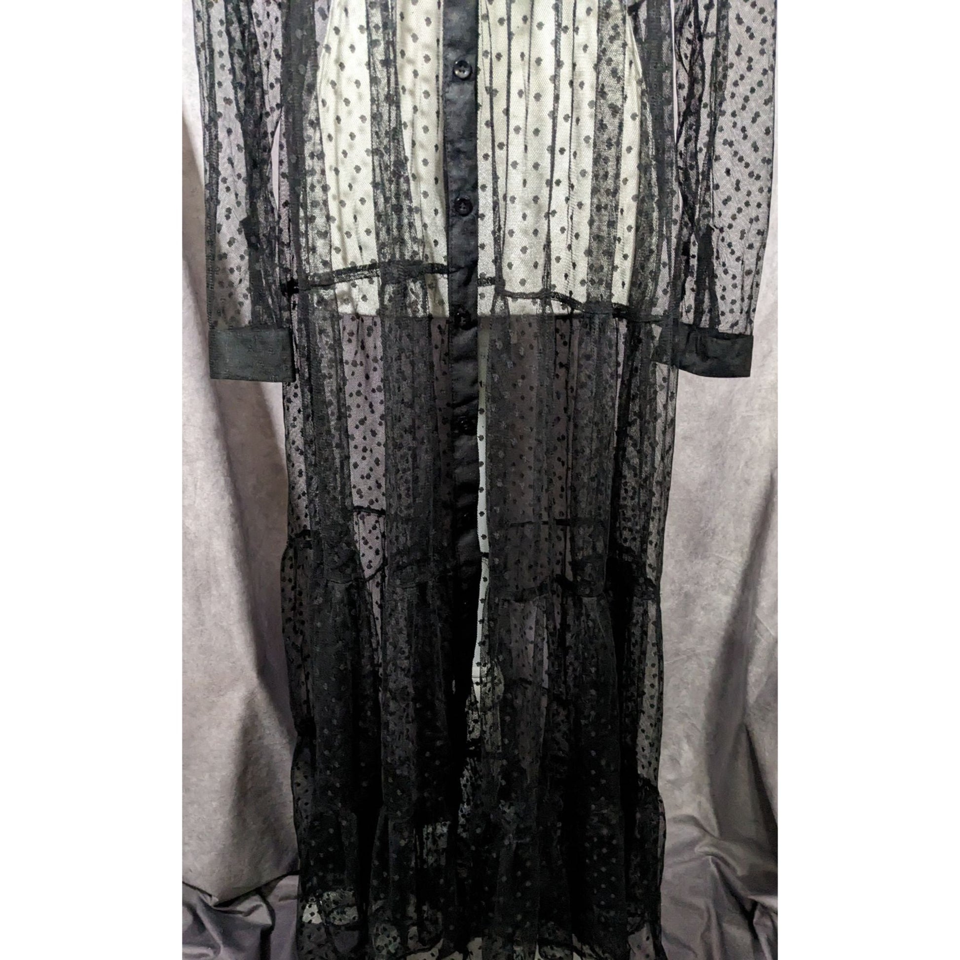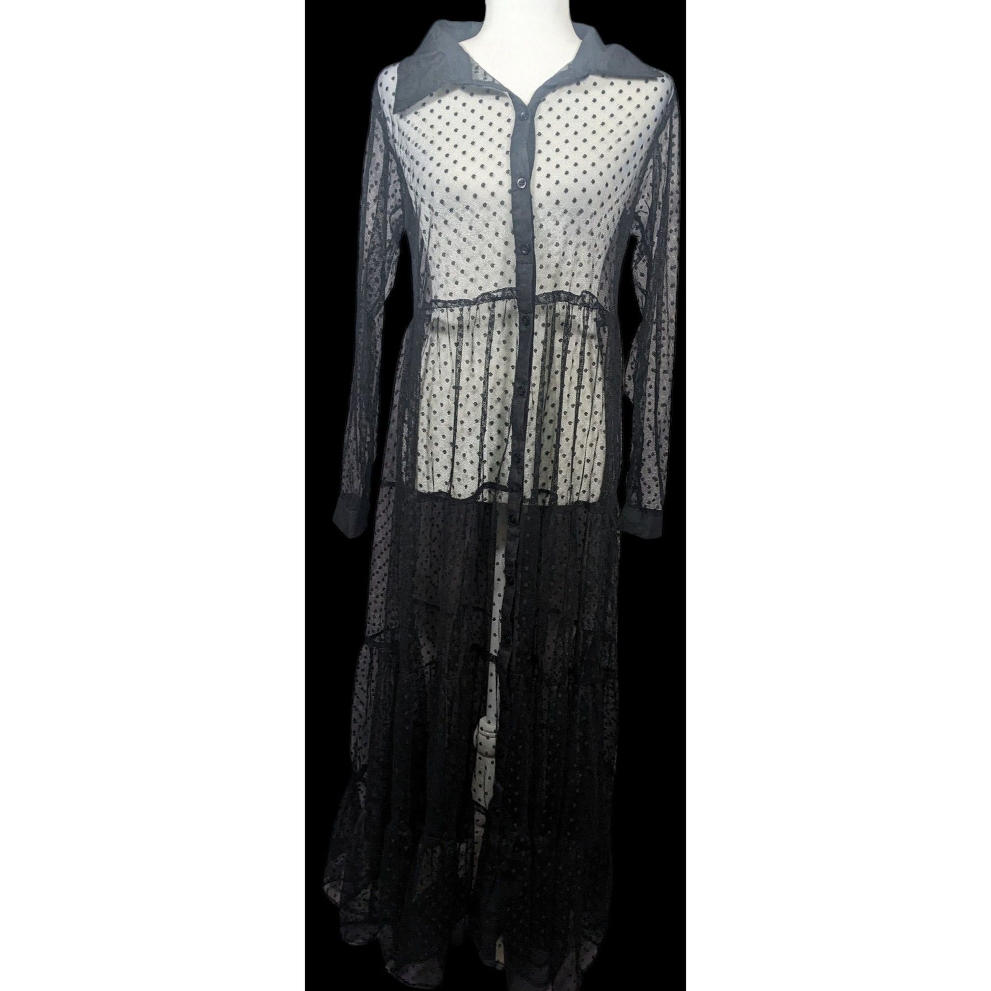 Vintage Spoon Jeans Sheer Black Polka Dot Maxi Dress