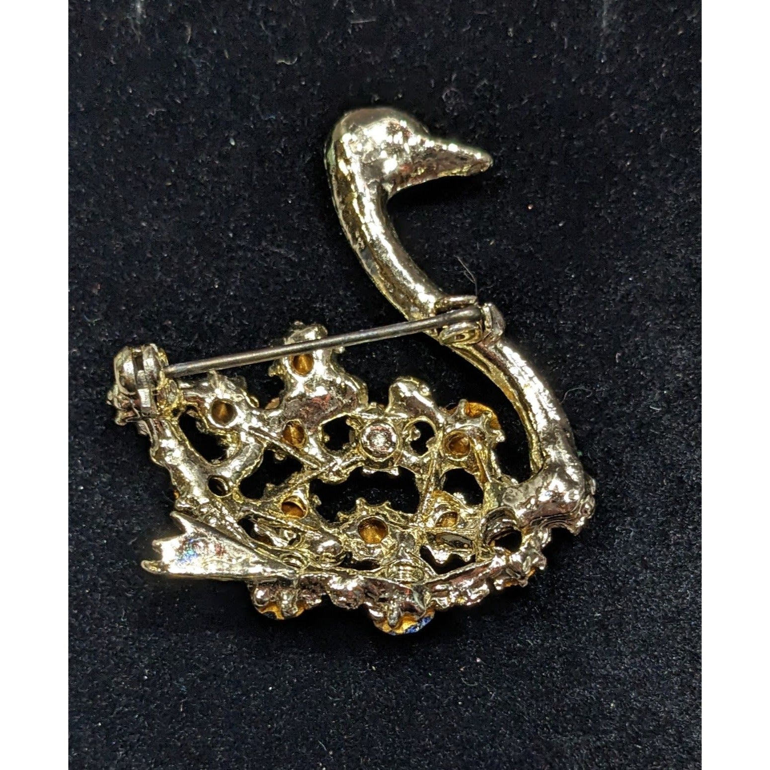 Add a touch of whimsy and elegance to your outfit with this vintage swan brooch. The gold-tone finish and rainbow rhinestones create a stunning visual effect, perfect for any occasion.
