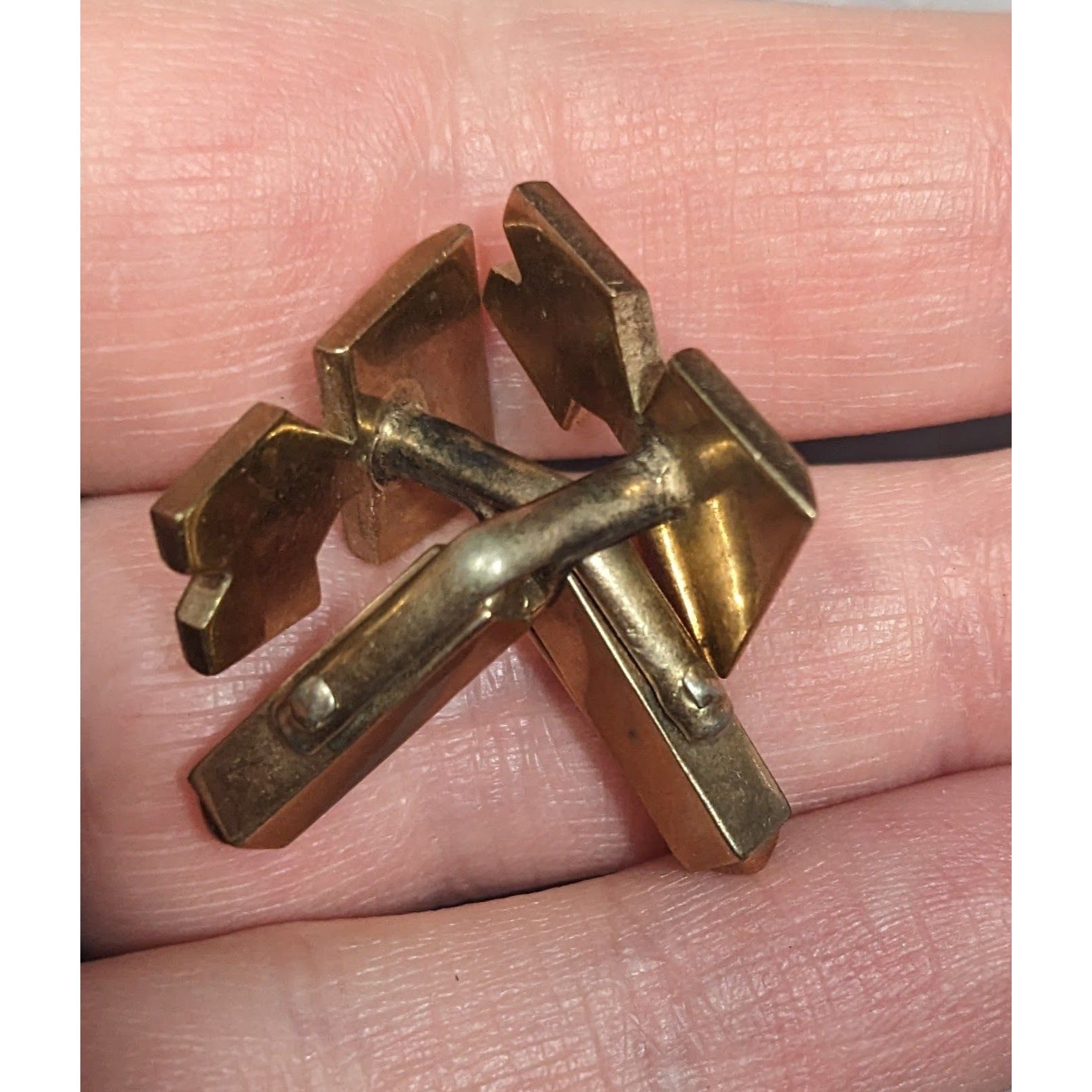 These vintage Swank cufflinks feature a unique K-shaped design with a stylish gold tone finish, perfect for adding a touch of elegance to any formal attire. Ideal for collectors or as a gift for someone special.