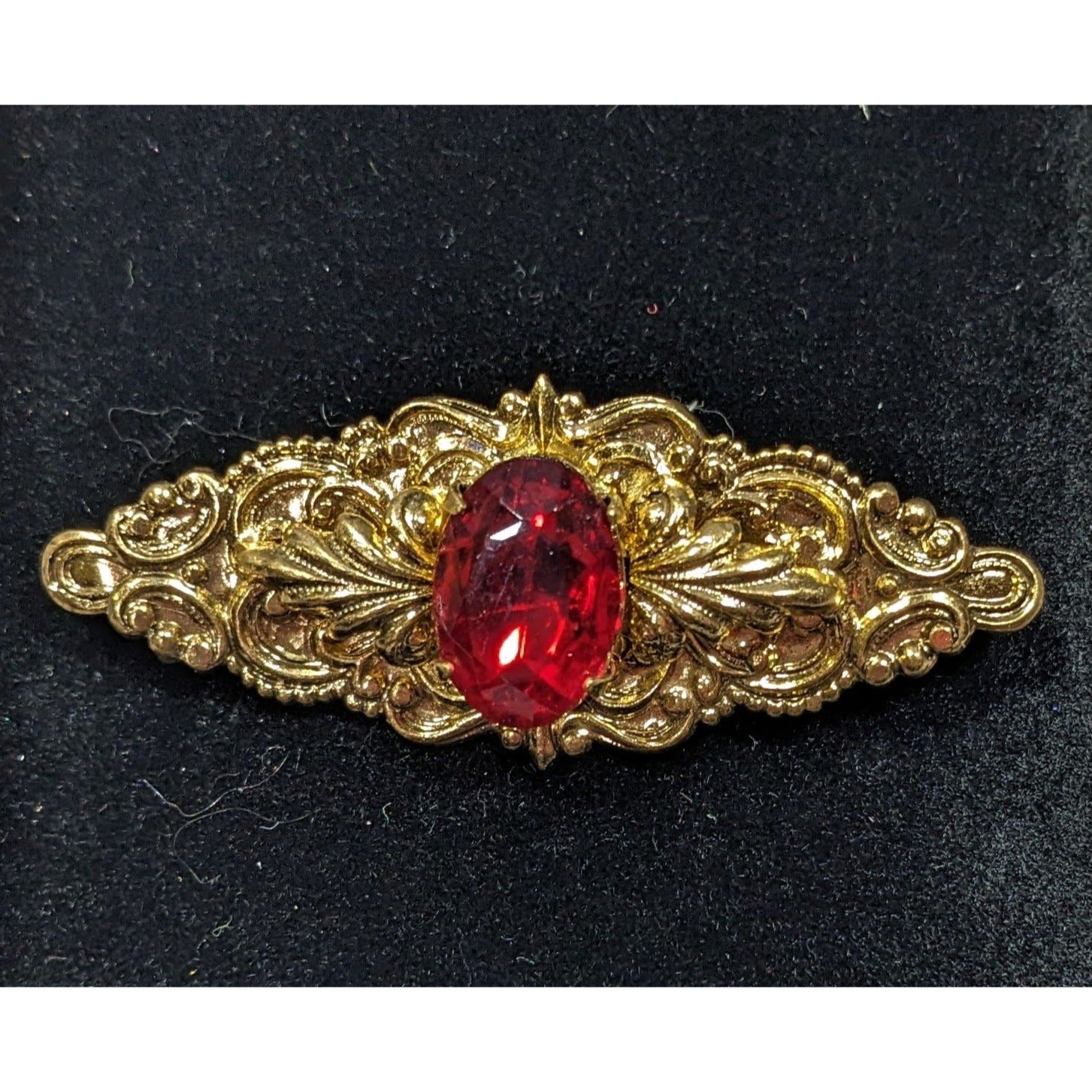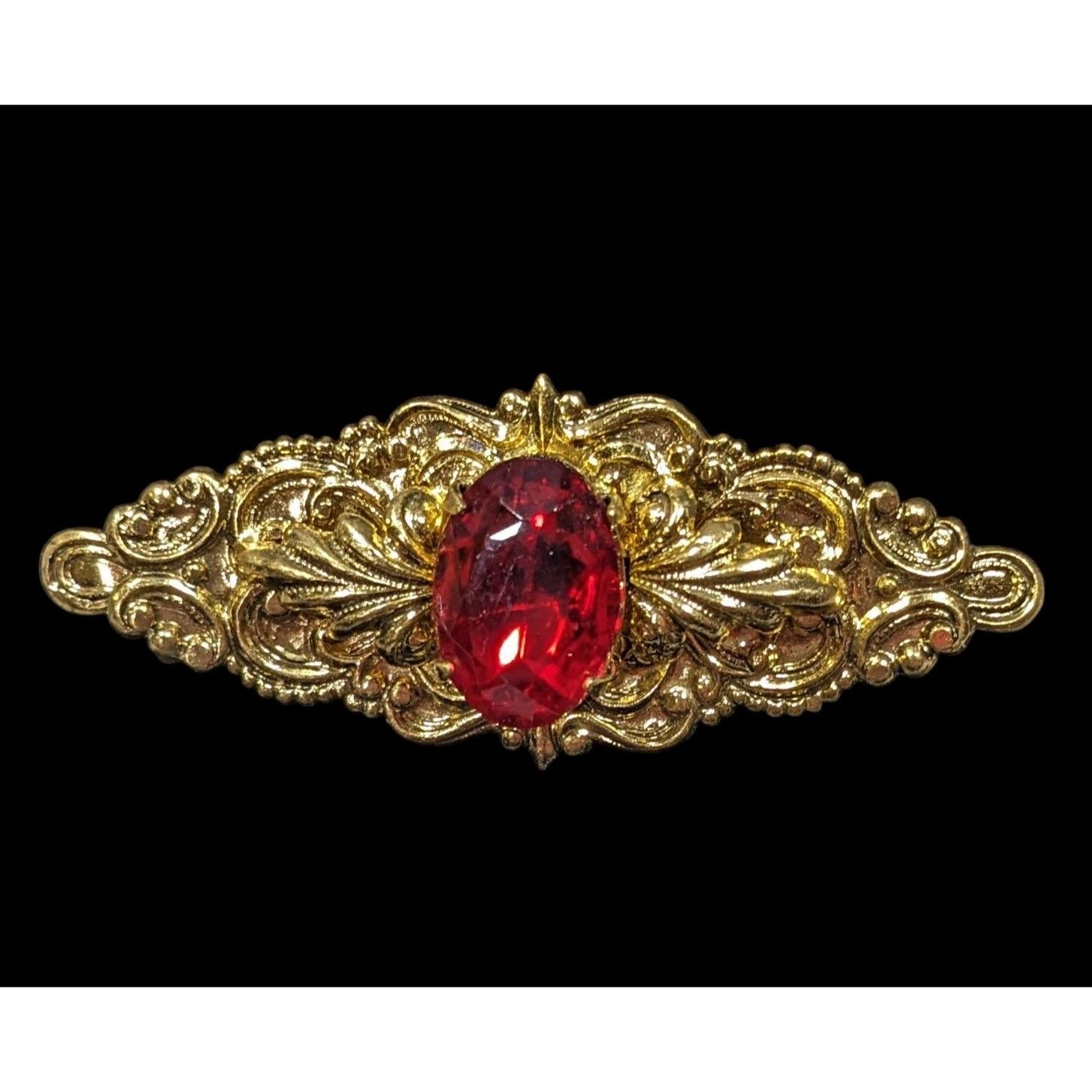 Vintage Victorian Vampire Red Gemmed Floral Brooch