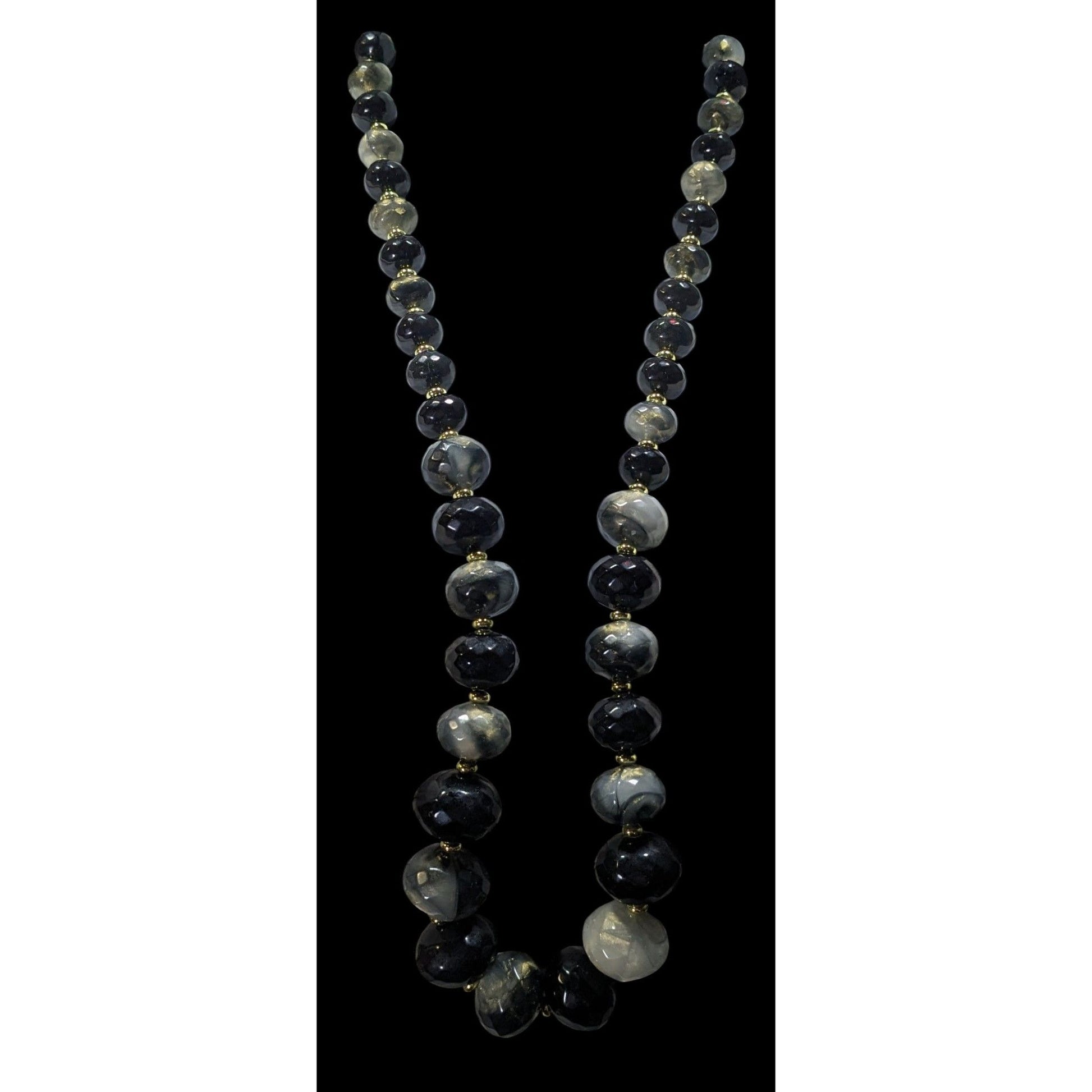 Whimsical Black And Grey Acrylic Beaded Necklace With Gold Tone Shimmer