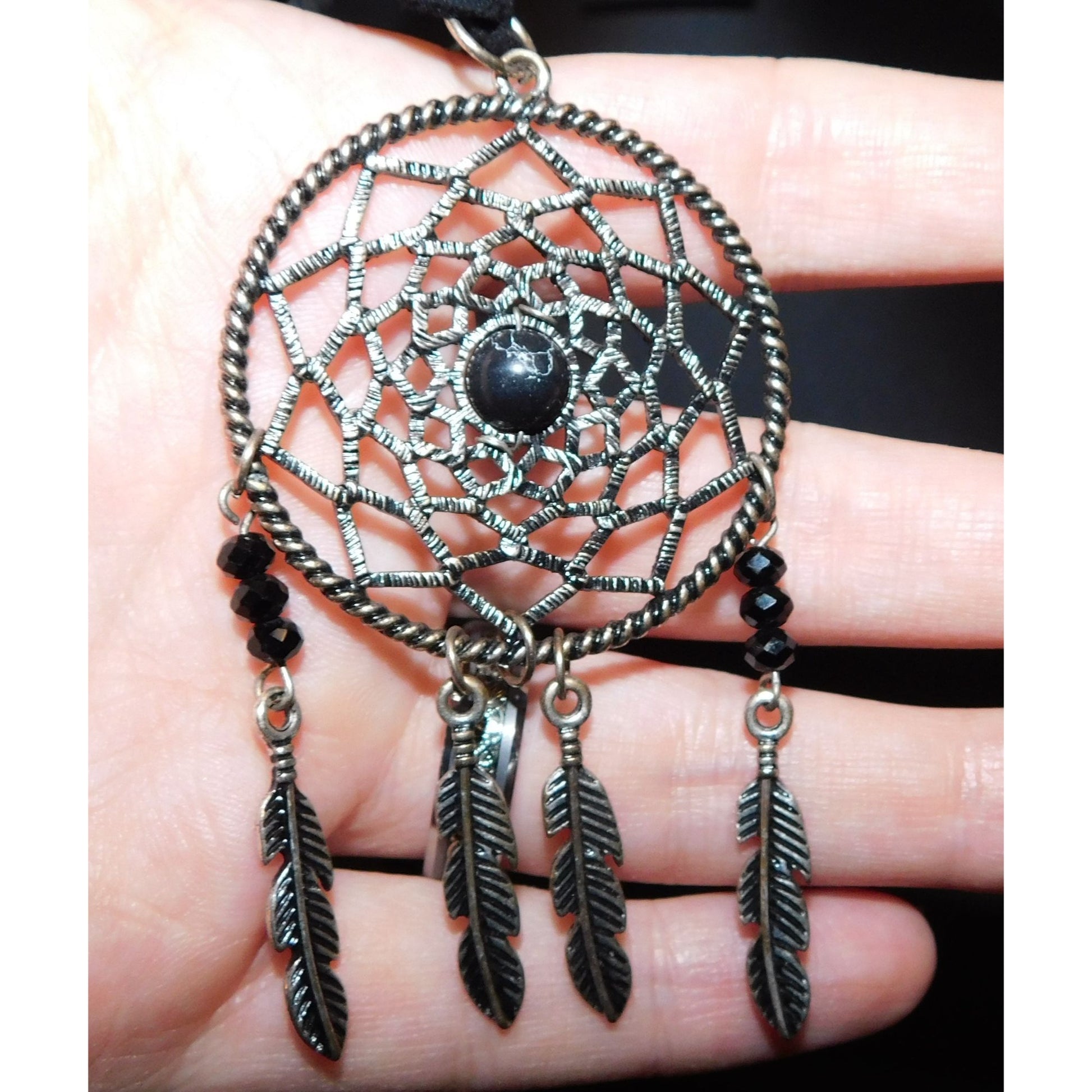 Whimsical Dreamcatcher Black And Silver Tone Necklace