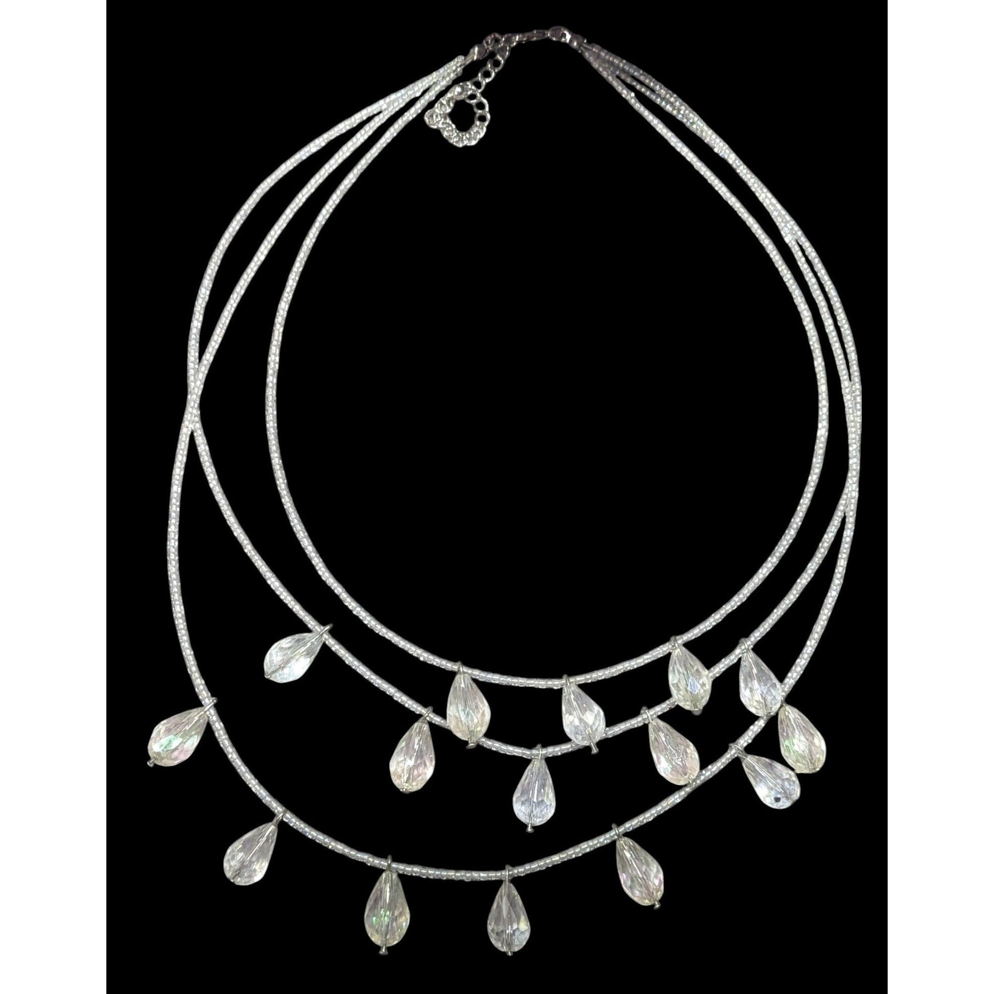 Whimsical Elegant Clear Aurora Borealis Beaded Teardrop Multilayer Necklace