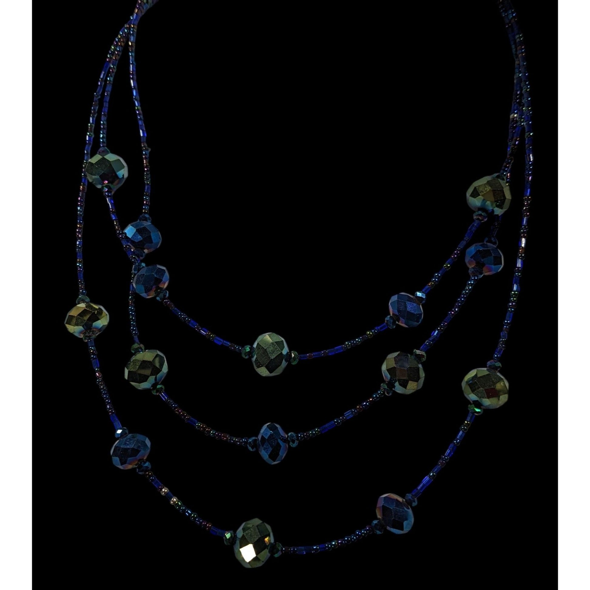 Whimsical Fantasy Blue And Green Oil Slick Glass Beaded Necklace