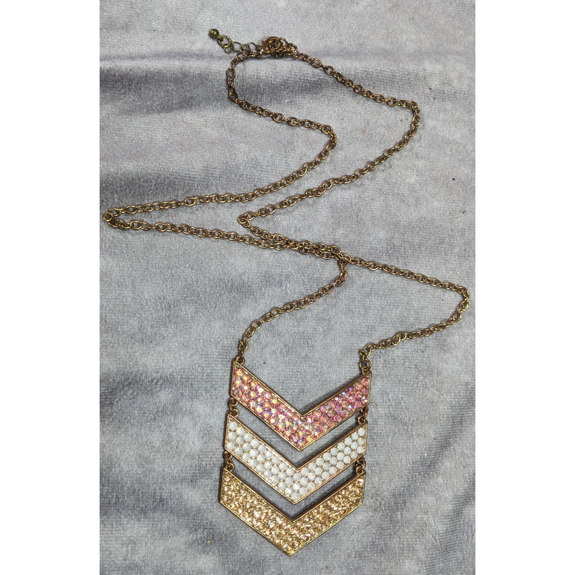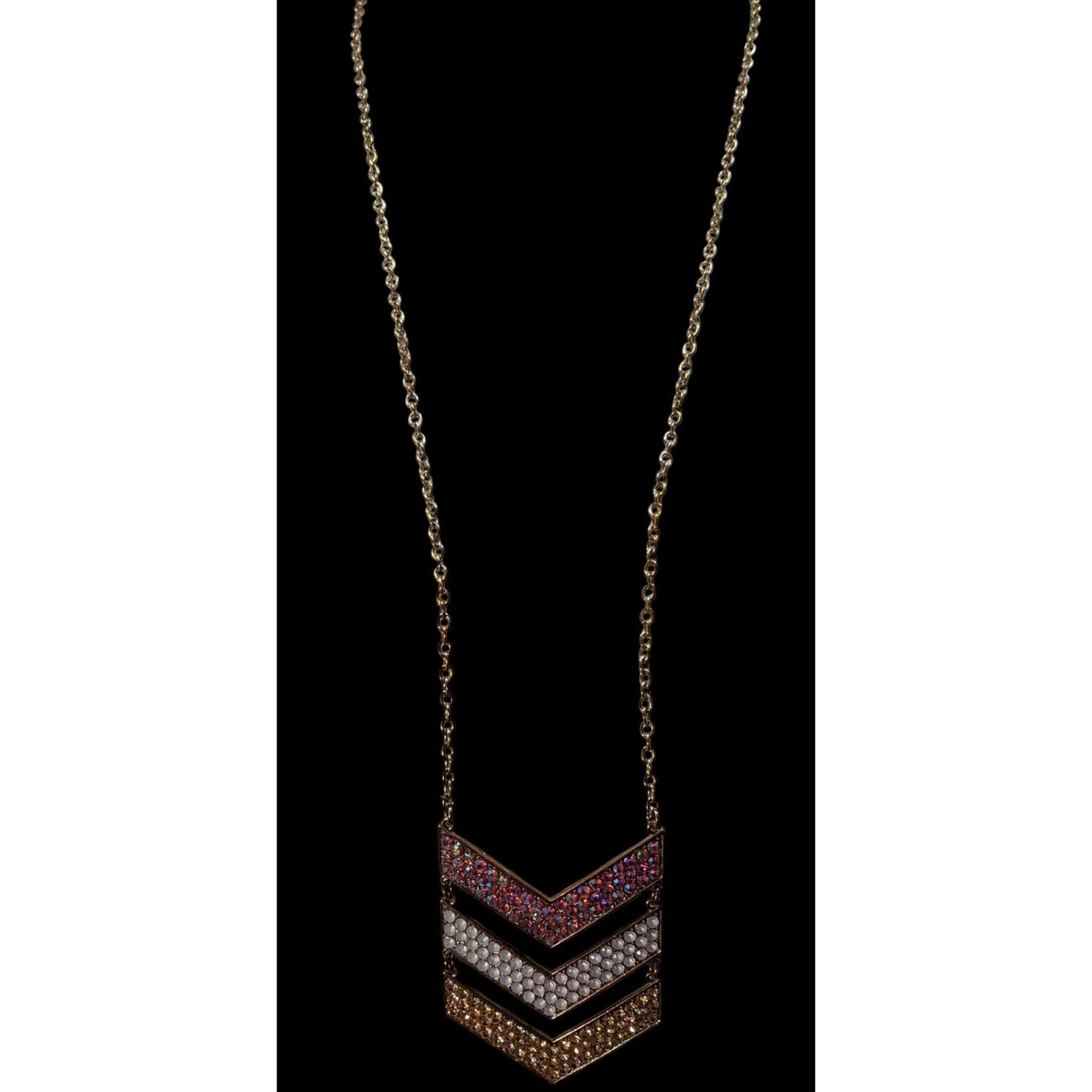 Whimsical Glam Multi Chevron Rhinestone Pendant Necklace