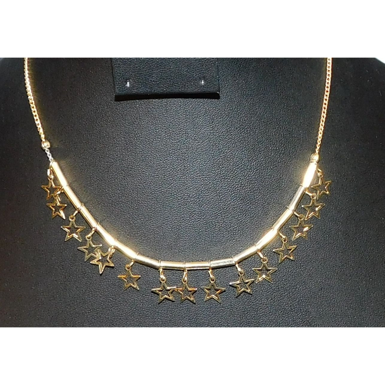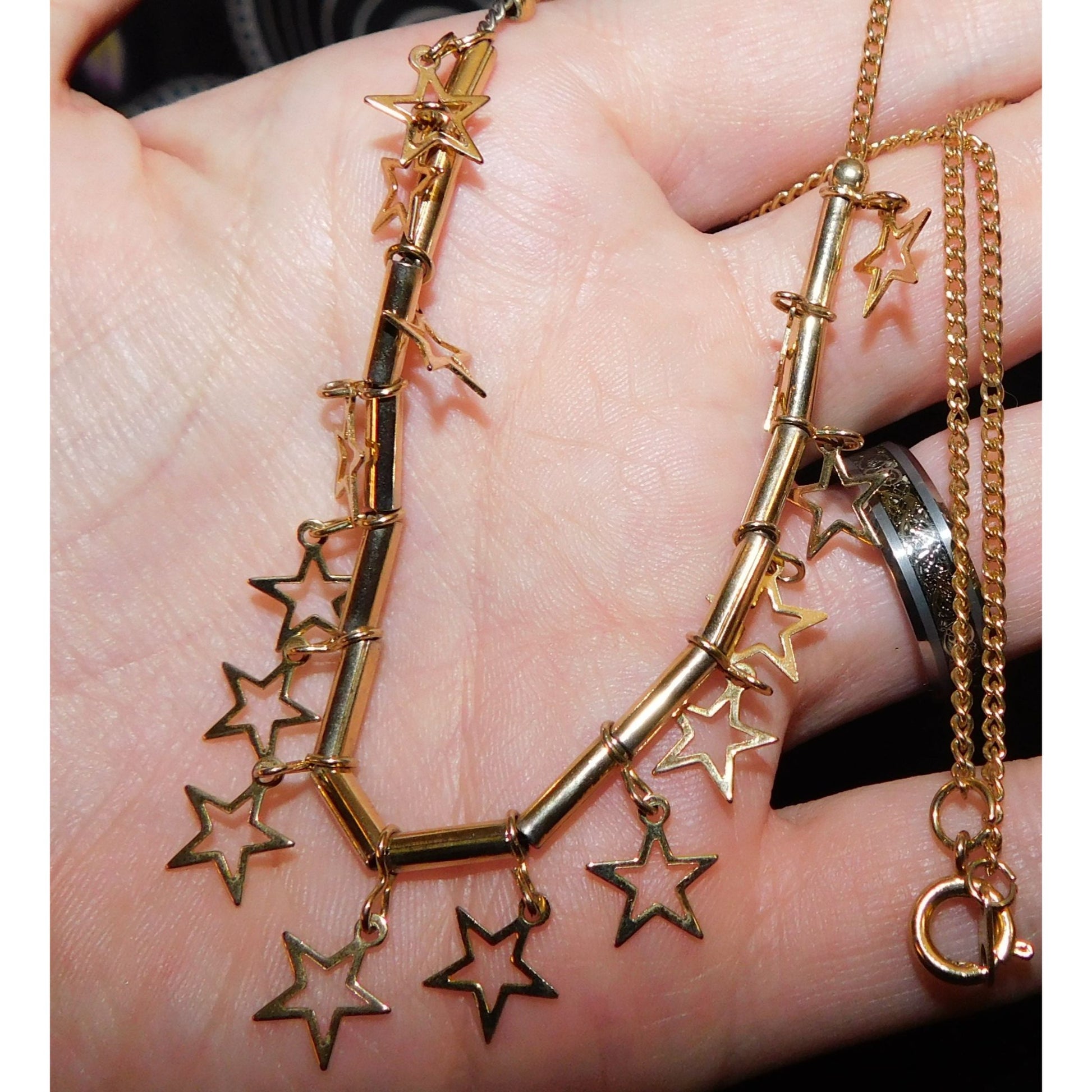 This whimsical gold tone star charm necklace adds a playful touch to any outfit. Its delicate design is perfect for everyday wear or special occasions. Ideal for those who love unique and charming accessories.