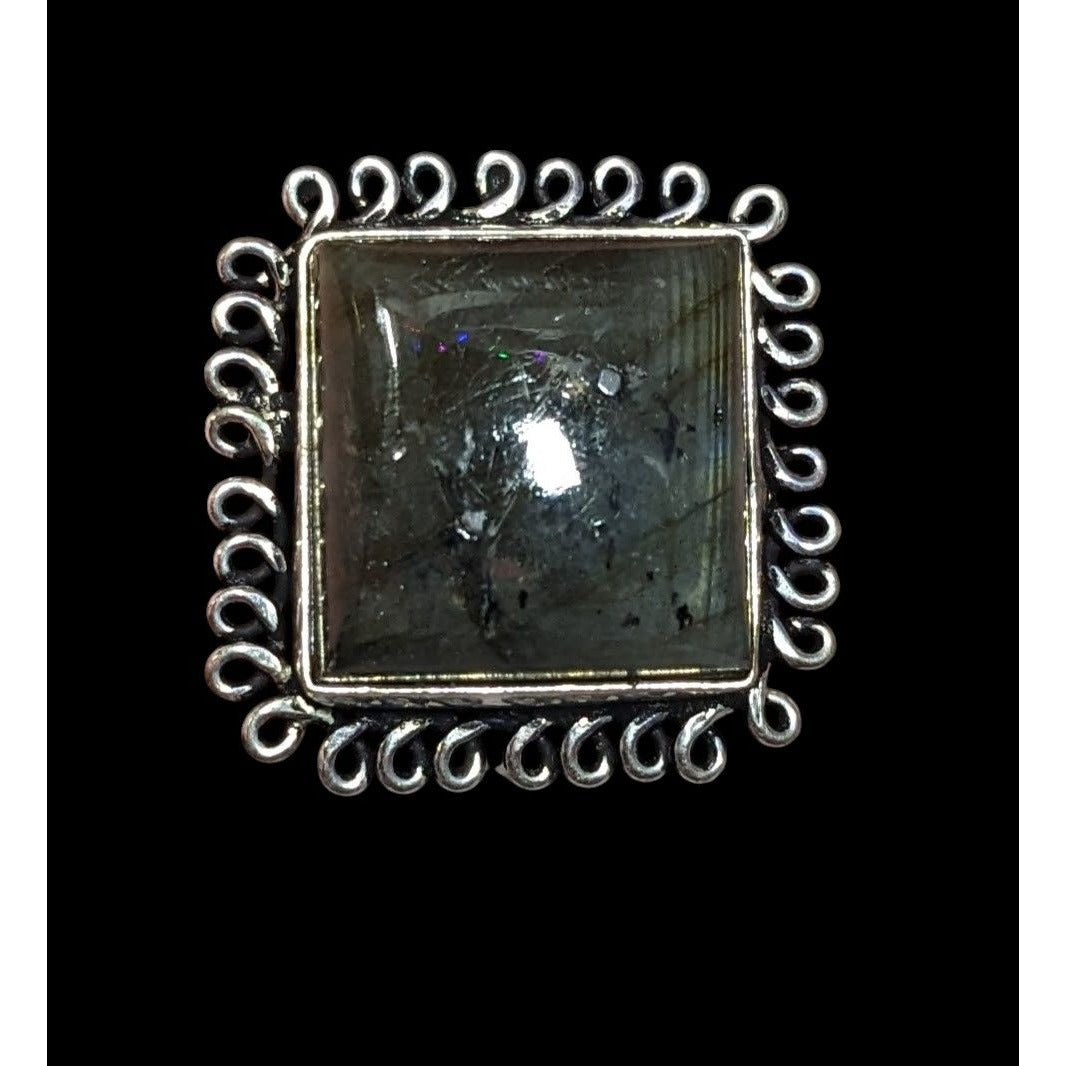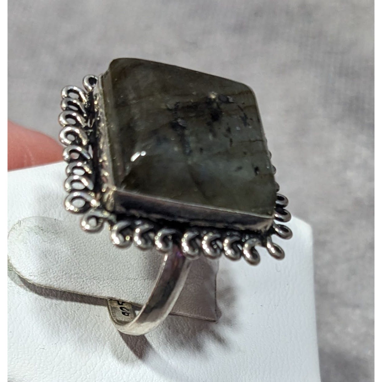 Whimsical Labradorite Square Cut Sterling Silver Ring Size 10