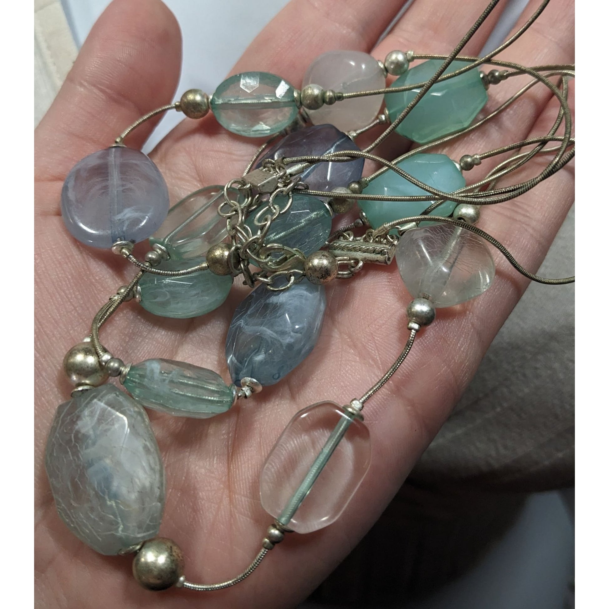 Whimsical Medmaidcore Blue And Silver Tone Layered Necklace