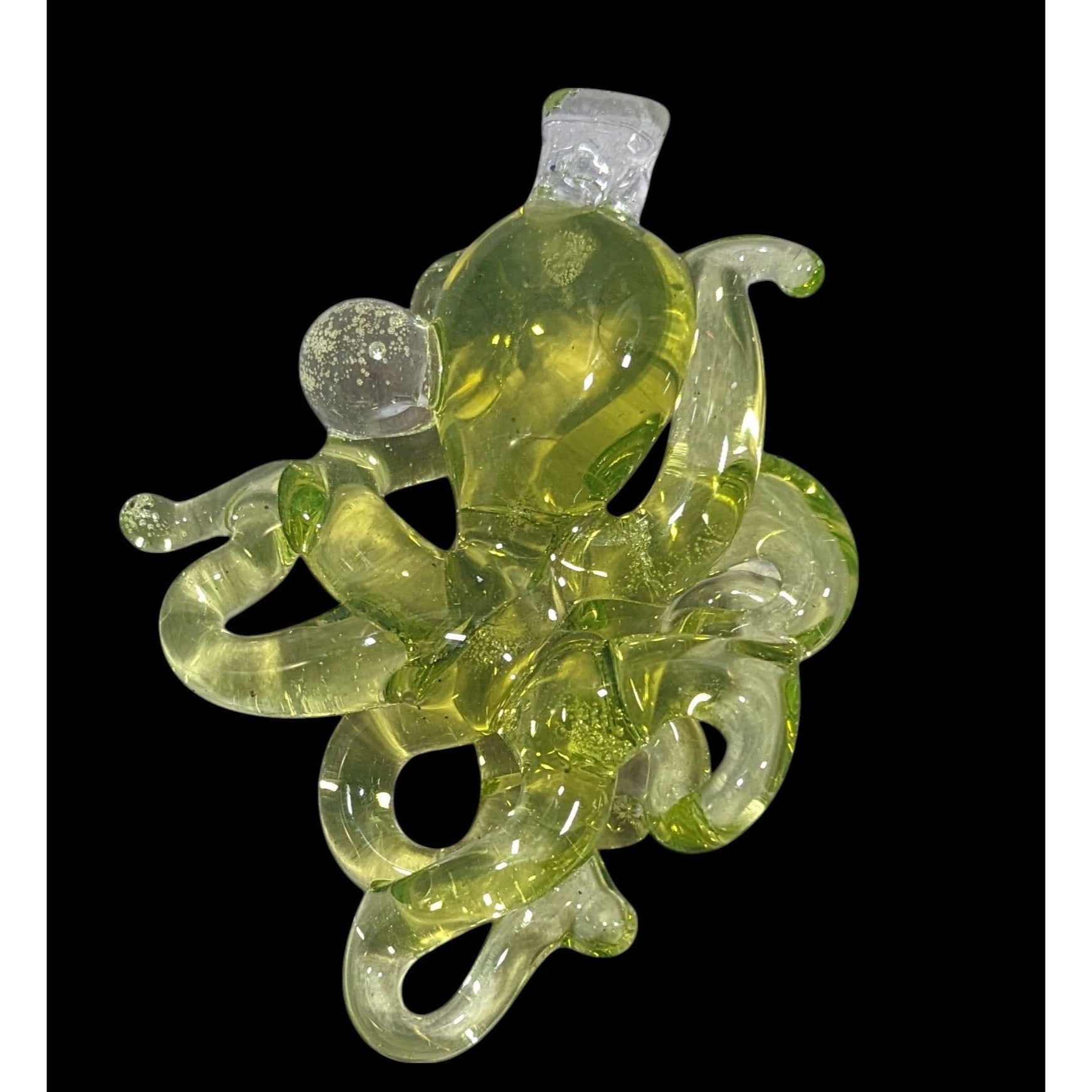 Add a splash of whimsy to your jewelry collection with this lime green octopus pendant. Handcrafted from lamp work glass, its unique design is sure to capture attention and spark conversation.