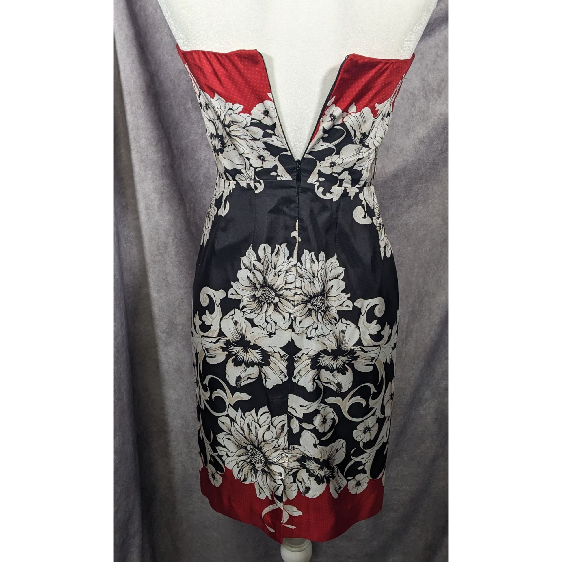 White House Black Marked Floral Strapless Silk Mini Dress Size 2