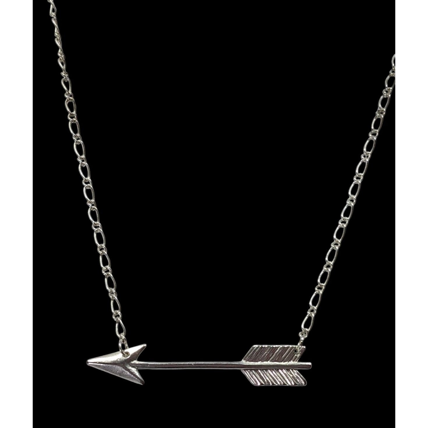 Embrace the nostalgic charm of the 90s with this vintage silver-tone arrow necklace. Perfect for layering or wearing alone, it adds a touch of retro flair to any outfit. A must-have accessory for those who love unique and timeless pieces.