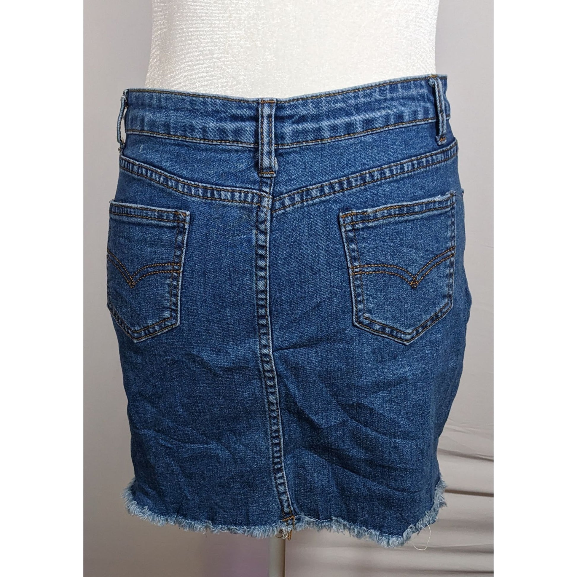This stylish Zaful denim mini skirt features trendy frayed edges, perfect for a casual day out or a night on the town. Its versatile blue hue complements any wardrobe. Pair it with a chic top for a complete look.
