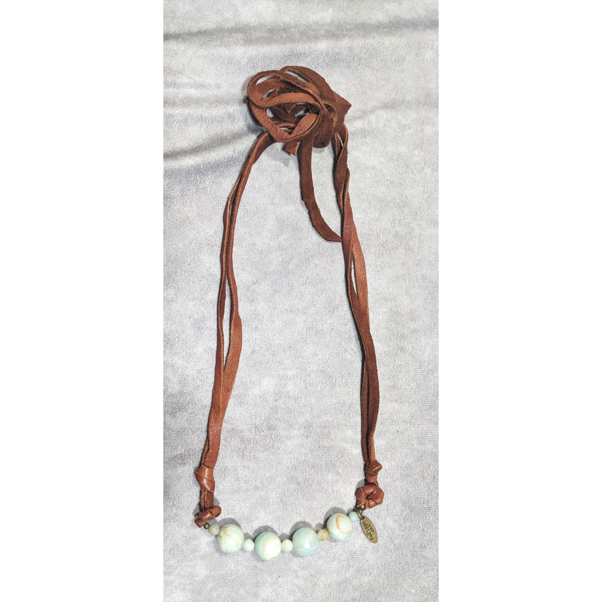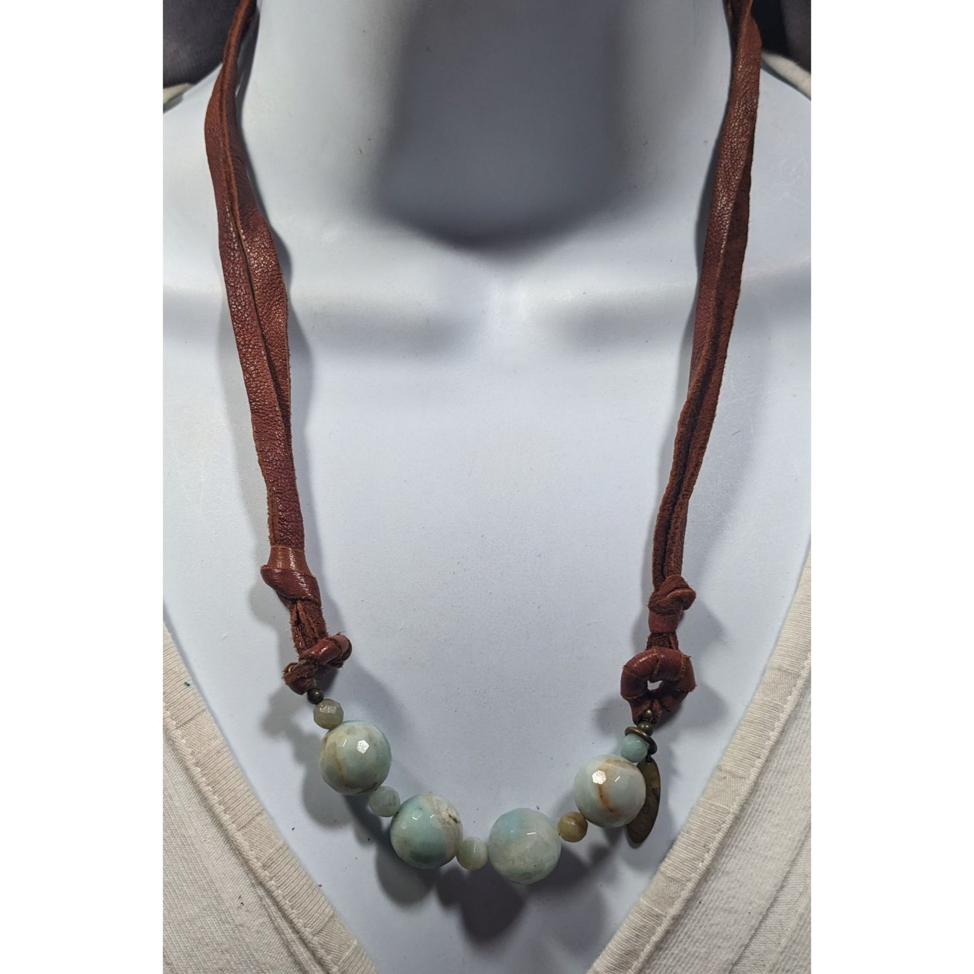 Zee Designs Bohemian Amazonite And Leather Tie On Necklace
